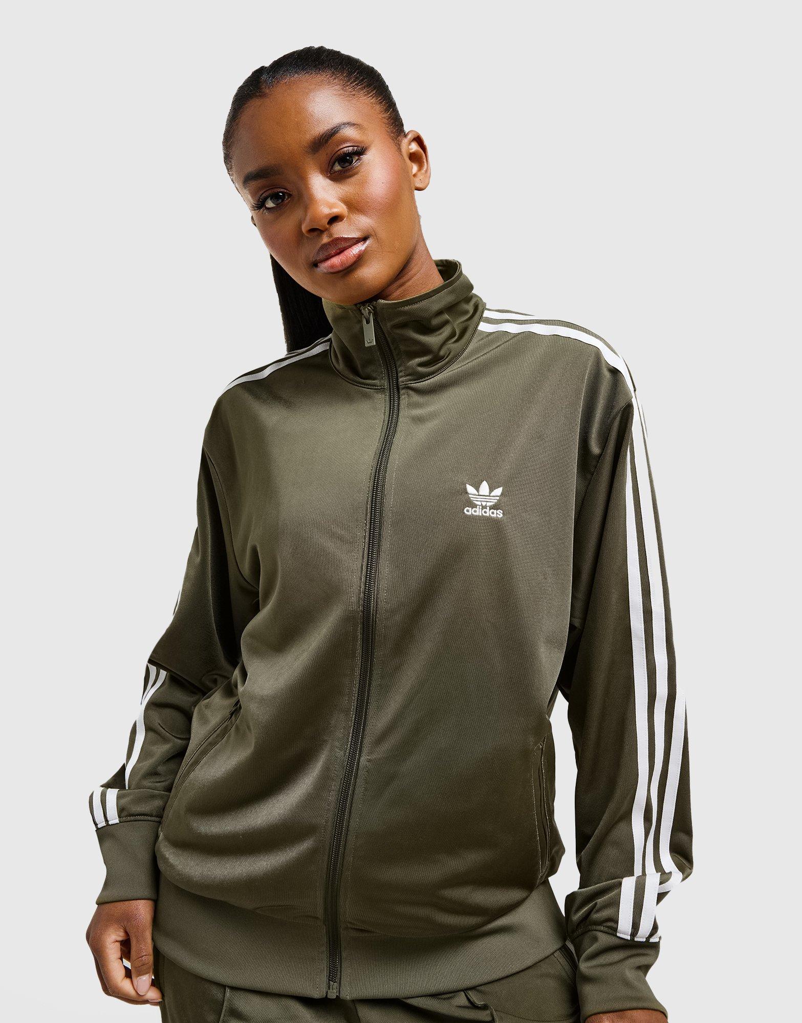 Layer up in a retro look with this women's Oversized Firebird Track Top from adidas Originals. In an Olive Strata colourway, this loose-fitting top is cut from smooth recycled polyester fabric for total comfort. It features a full-zip fastening and stand-up collar for custom coverage, with ribbed trims to hold the shape and zip-up side pockets for secure storage. Finished up with the Trefoil logo to the chest and 3-Stripes to the sleeve. Machine washable | Our model is 5'7" and wears a size S. | IY4742