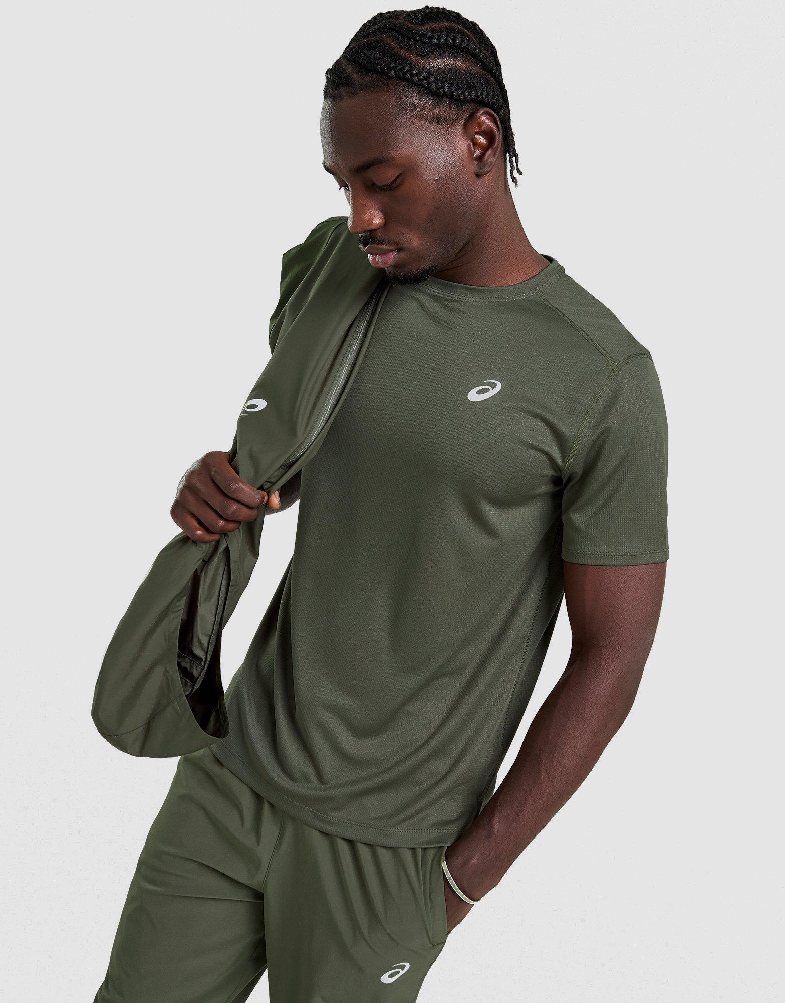 Make big moves in this men's ASICS Core T-Shirt. In Mantle Green, this smooth, sweat-wicking tee's got every workout covered. Breathable fabric shifts moisture away fast. Reflective ASICS branding keeps you seen in the dark. Machine washable. | Our model is 6'1" with a 36" chest and wears a size M.