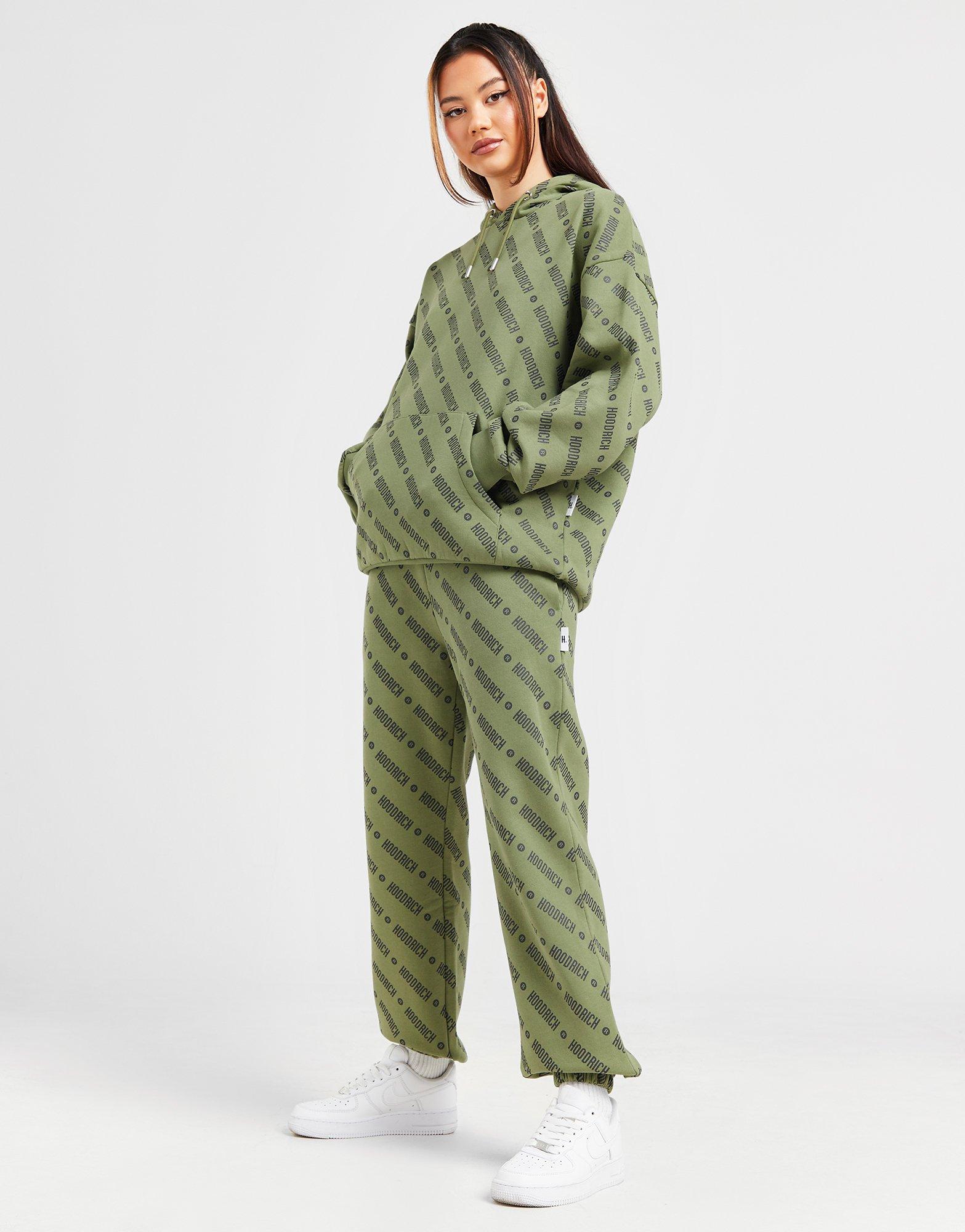 Level up your look in these women's Oblique All Over Print Joggers by Hoodrich. In a Khaki colourway, these standard-fit joggers are made with a super-soft and snug cotton poly blended fabric for easy wear. They feature an elastic waistband for a snug, relaxed feel, cuffed ankles to hold the shape, and side pockets for quick access. With a zip pocket to the inside of the thigh so you can stash your staples, they're finished with all-over Hoodrich branding. Machine washable. | Our model is 5'3" and wears a size small.