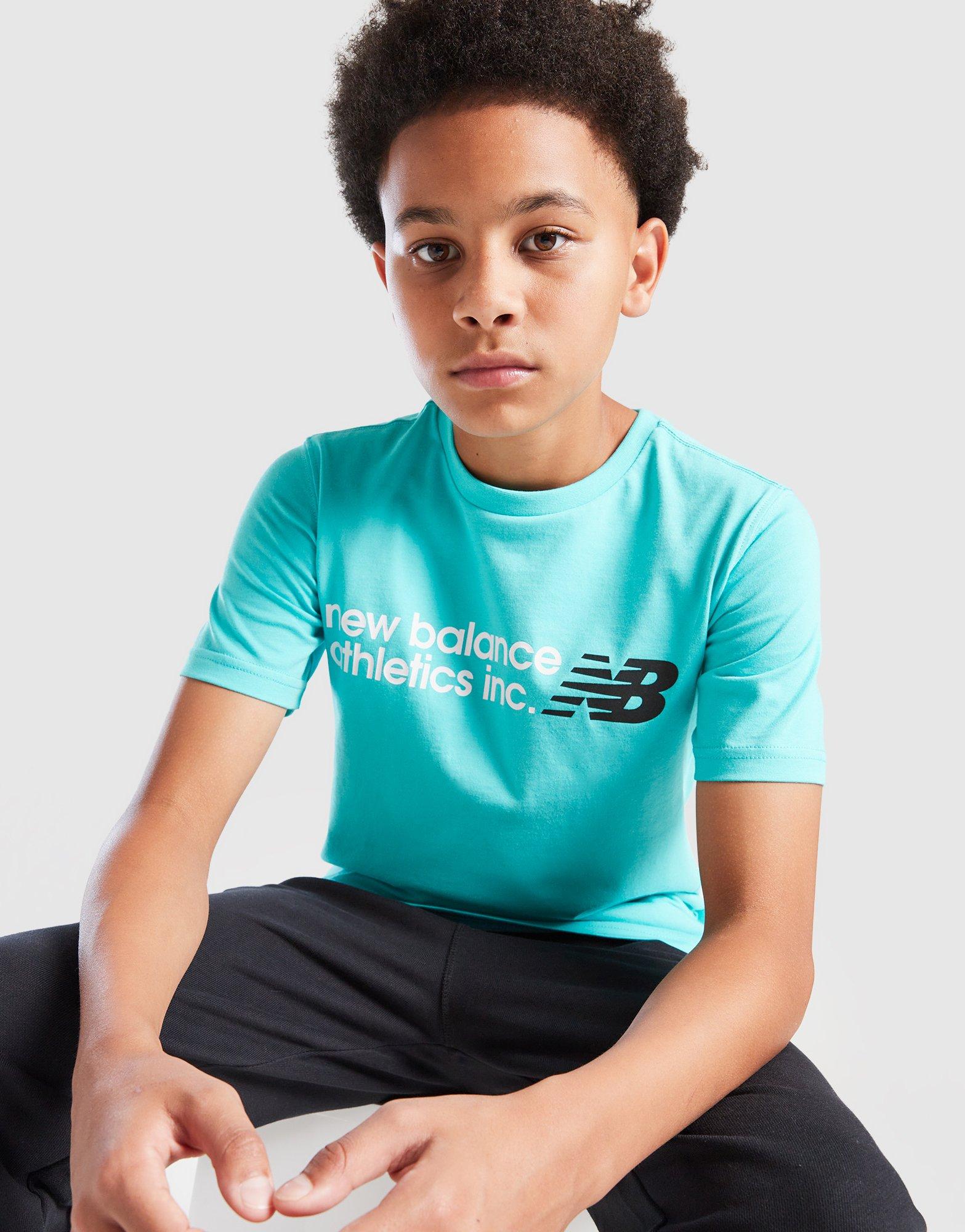 An everyday staple. With sports DNA. New Balance goes bold with this juniors' Athletics Large Logo T-Shirt in Cyber. Soft cotton. Crew neck. Short sleeves. Everything you need in a tee. It's signed off with a bold New Balance Athletics graphic up front. Machine washable.