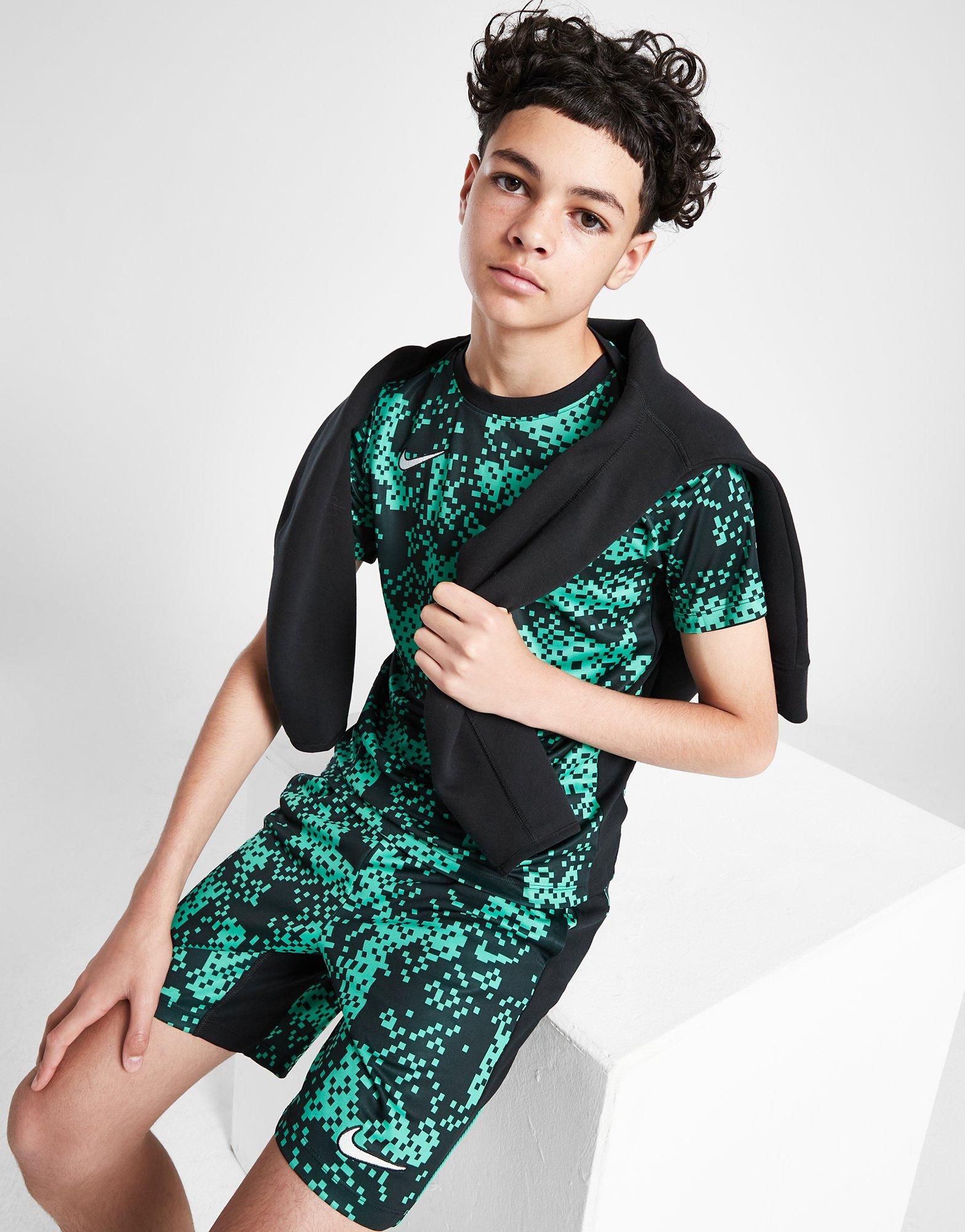 Energy to burn? Cop this juniors' Dri-FIT Academy Pro All Over Print T-Shirt by Nike. In a Stadium Green colourway with a digital print, this top is made from a smooth poly fabric for all-day wear. It features sweat-wicking Dri-FIT to keep you cool, while the ribbed collar and short sleeves make for a classic cut. Signed off with the Swoosh to the chest. Machine washable.