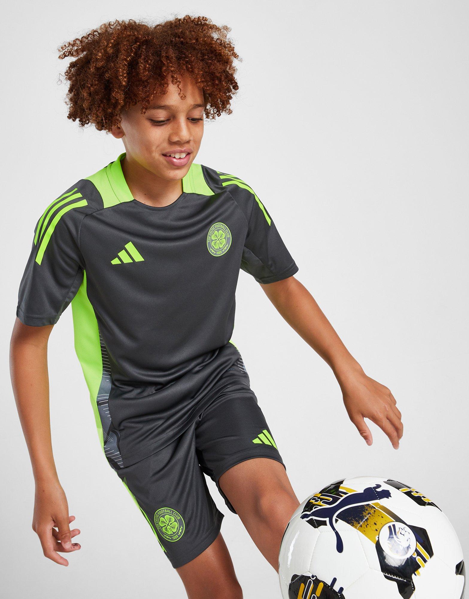 Show who you're backing in these juniors' Celtic Training Shorts by adidas. In a Dark Grey colourway with Lucid Lemon details, these shorts are made with ultra-smooth, durable recycled polyester for lasting wear. They're crafted with AEROREADY tech to wick away sweat, while breezy mesh panels offer extra airflow. They have an elastic waistband with a drawcord to secure the fit, and zipped side pockets for quick storage. Finished with signature adidas branding throughout, and the iconic Celtic badge to highlight your pride. Machine washable. | IV9162