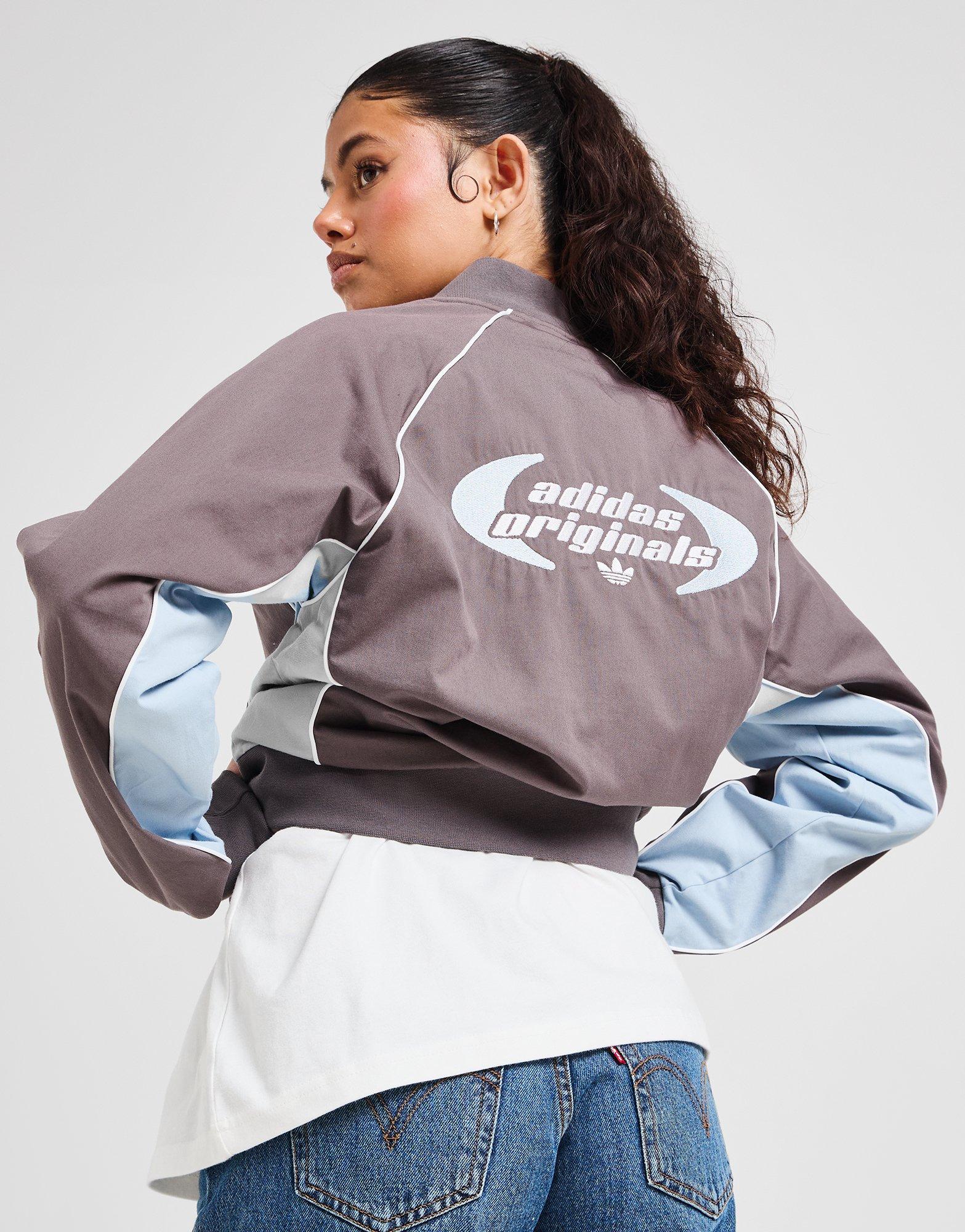 Feel race-ready with this women's Motorsport Jacket from adidas Originals. In a Charcoal and Wonder Blue colourway, this JD-exclusive jacket is cut fro light and breathable cotton fabric for everyday comfort. It features a full-zip fastening and ribbed bomber collar for custom coverage, with ribbed cuffs to hold the shape and side pockets for easy storage. Finished up with patch branding to the chest and sleeve. Machine washable | Our model is 5'7.5" and wears a size S | KA9815