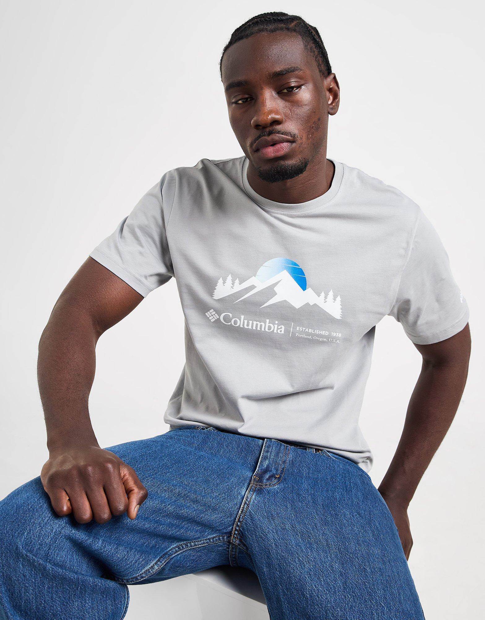 Exclusive to JD. Update your everyday staples with this men's Points T-Shirt from Columbia. In a White colourway, this standard-fit tee is made with soft, lightweight cotton for lasting comfort. It features a ribbed crew neckline and short sleeves for an easy feel, and is finished with a contrast Columbia branded graphic stamped to the chest. Machine washable. | Our model is 6'1" with a 36" chest and wears a size M.