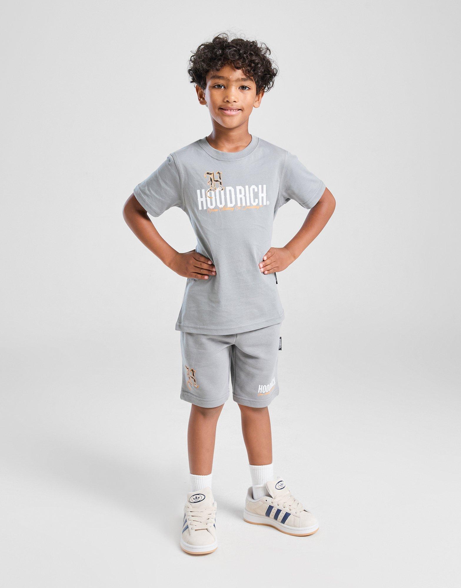Cop em some street-ready style with this children's Eterno T-Shirt/Shorts Set from Hoodrich. In a Grey colourway, this JD-exclusive set features a soft cotton tee with a ribbed crew neckline and short sleeves for a classic look. The matching shorts are made from a cotton-blended fabric and have an elasticated waistband for a secure fit. Finished up with Hoodrich graphic branding throughout. Machine washable.
