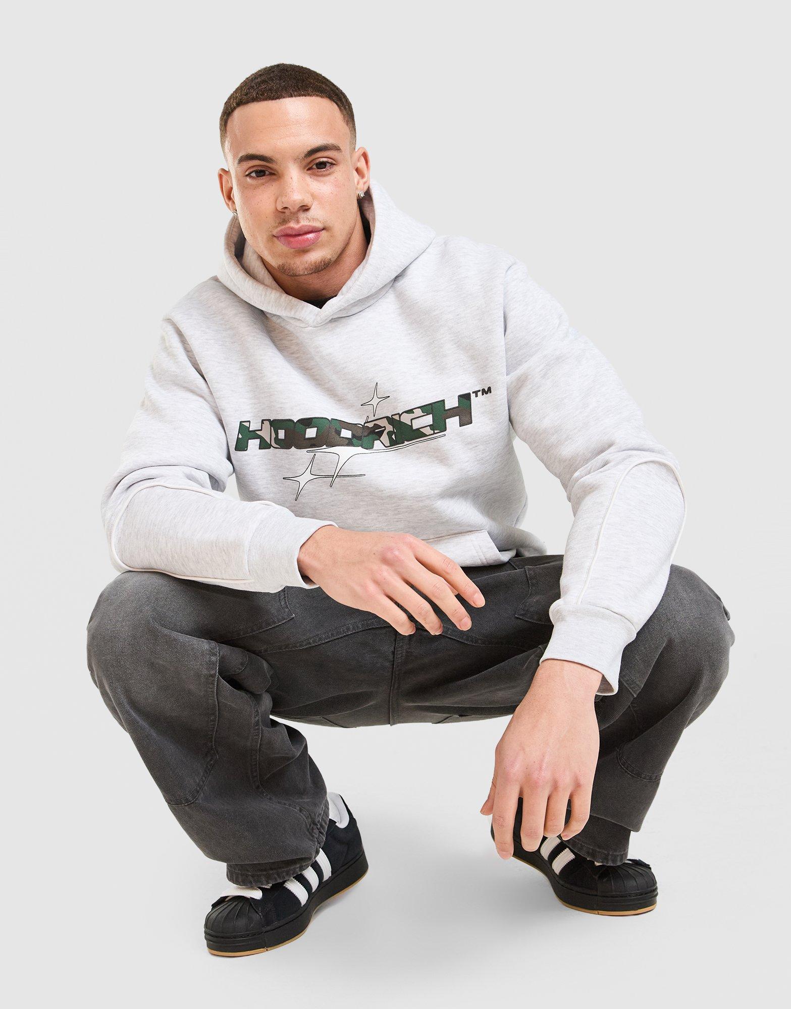 Get the street staples right with Hoodrich in this men's Ryder Hoodie. Landing in grey, this JD-exclusive pullover has a fixed hood, ribbed trims and a kangaroo pocket for a clean look. A thick cotton blend feels soft and locks in your heat. Finished with camo Hoodrich branding to the front. Machine washable. | Our model is 6'0.5" with a 38" chest and wears a size M.