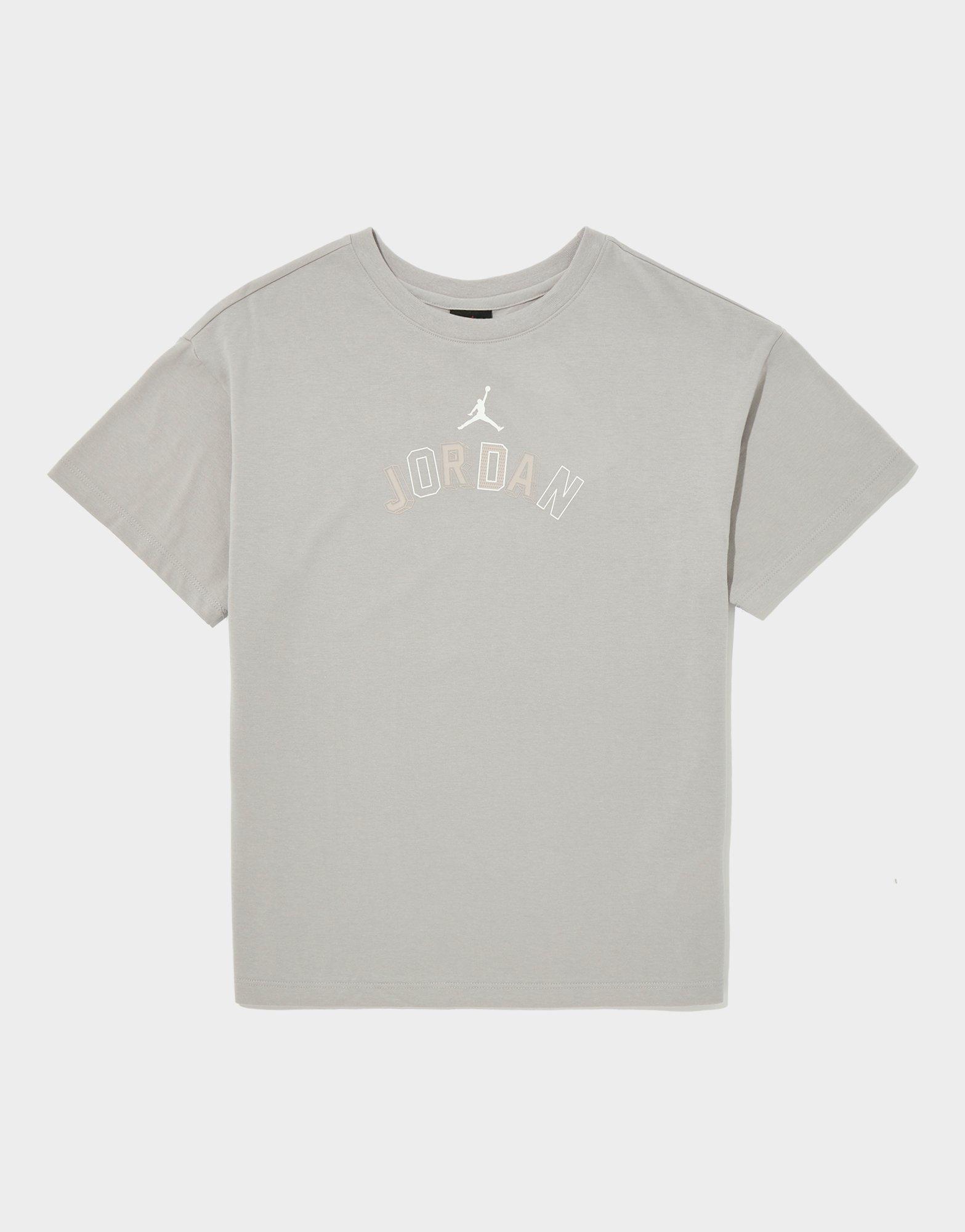 Refresh your everyday essentials. This junior girls' Logo T-Shirt from Jordan is exclusive to JD. It features short sleeves with a ribbed crew neckline and lands in smooth grey. Finished with branding at the chest. Machine washable.