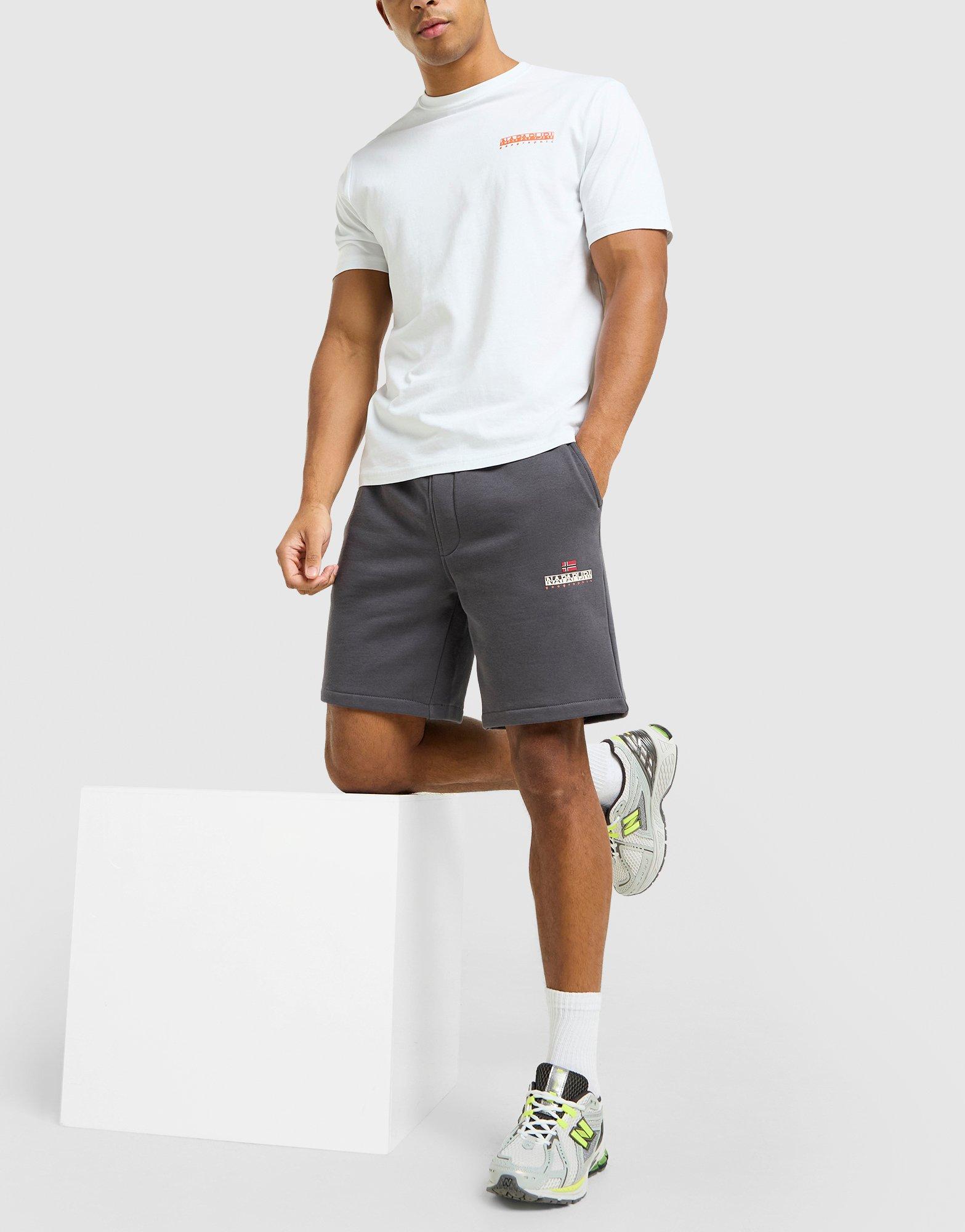 Keep it chill with these men's Nory Fleece Shorts from Napapijri. Exclusive to JD, these standard-fit shorts are made from soft fleece fabric in a charcoal colourway. They feature an elasticated waistband, as well as side pockets. Finished with signature Napapijri branding to the thigh. Machine washable. | Our model is 6'1" and wears a size M.