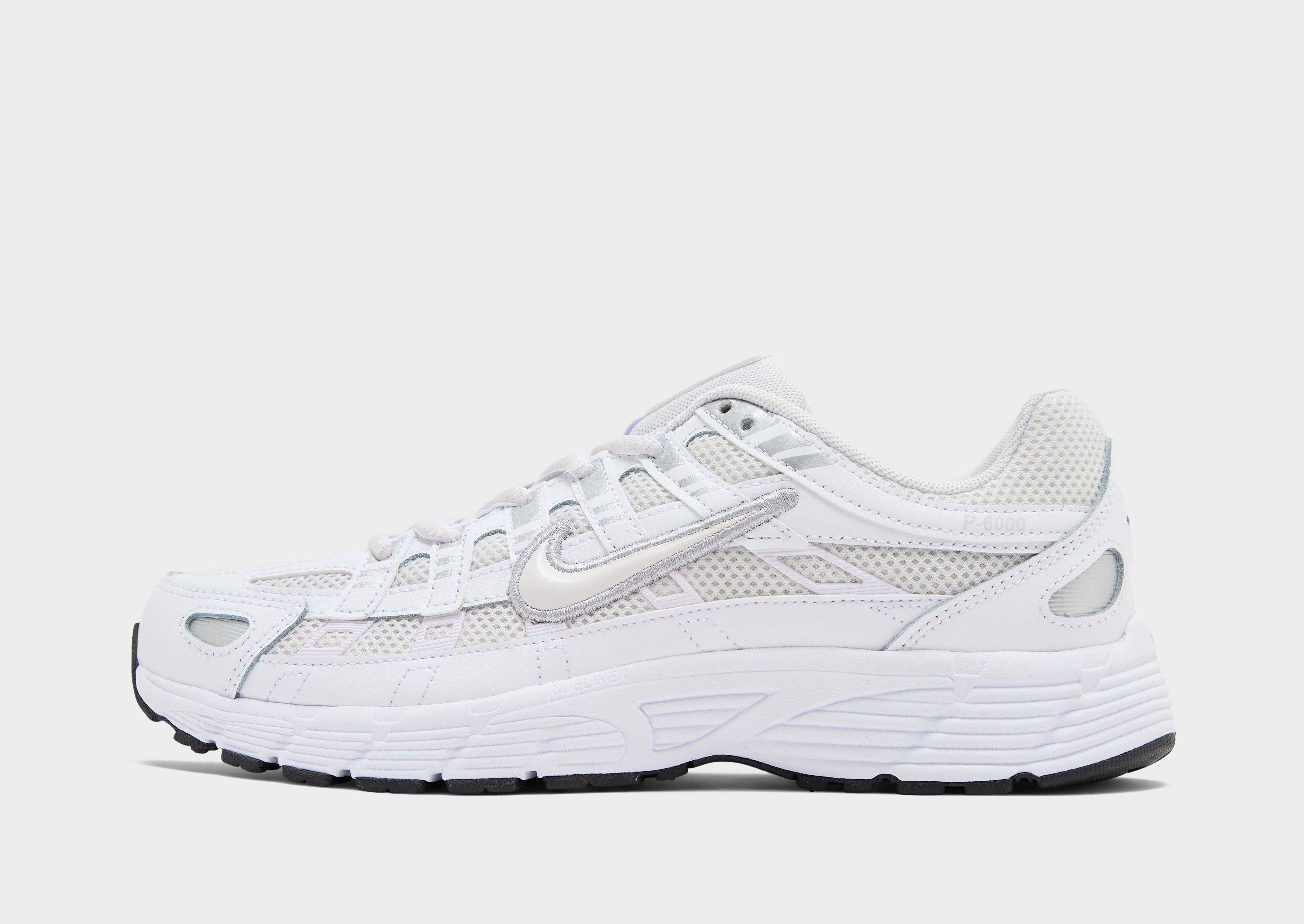 Retro running lands from Nike with these juniors' P-6000 sneakers from Nike. In a White and Platinum Tint colourway, the airy mesh and real and synthetic leather upper offer that early 2000s track style. They feature a padded ankle collar and a tonal lace fastening, while the cushioned insole and foam midsole combine for a soft and responsive step. Finished off with a grippy rubebr outsole, the signature Swoosh, and P-6000 branding.