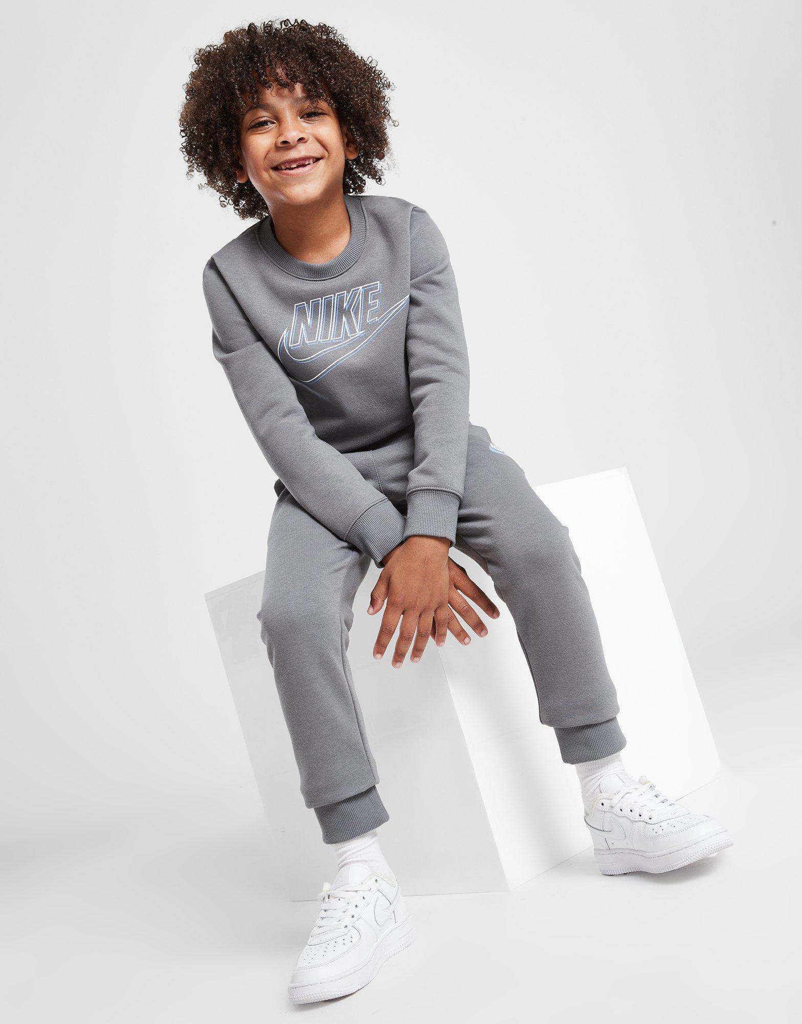 Get 'em double the heat with this children's Swoosh Logo Tracksuit from Nike. Exclusive to JD, this standard-fit suit is cut from a cotton poly blended fabric that's soft, snug, and breathable to ensure your little one's comfy throughout the day. In a Grey colourway, it features a crew sweatshirt and matching joggers. Finished with the Swoosh to the chest and thigh. Machine washable.