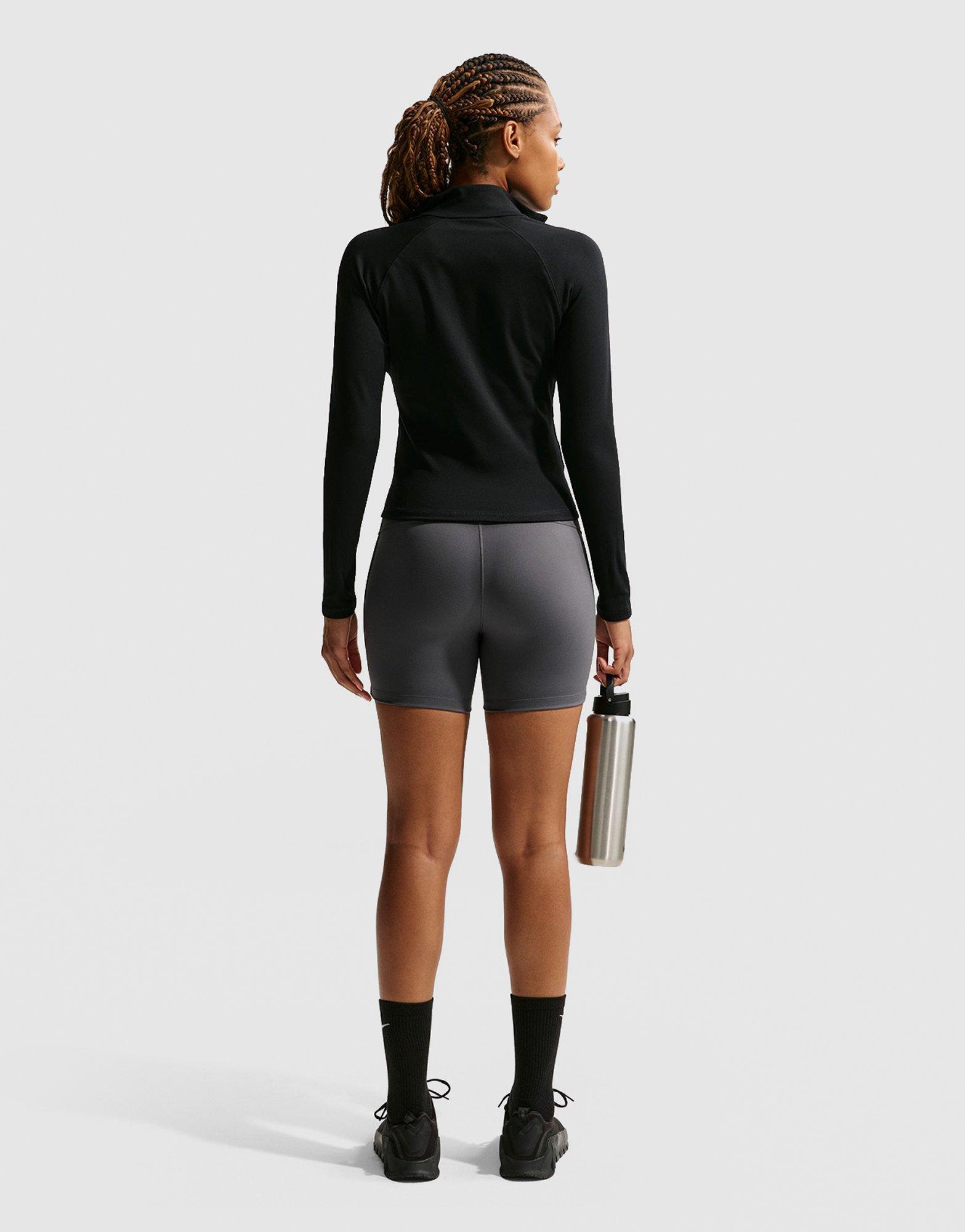 Classes to catchups, keep it moving in these women's Training Graphic Swoosh Wrap Shorts from Nike. In a JD-exclusive grey shade, these fitness shorts have a wrap-over elastic waistband that sits high for extra coverage. A drop-in pocket at the back fits most phones. Made from smooth and stretchy midweight fabric, they use sweat-wicking Dri-FIT tech to keep you cool. Finished with Swoosh taping down the side seams and a contrast logo on the front. Machine washable. | Our model wears a size S.