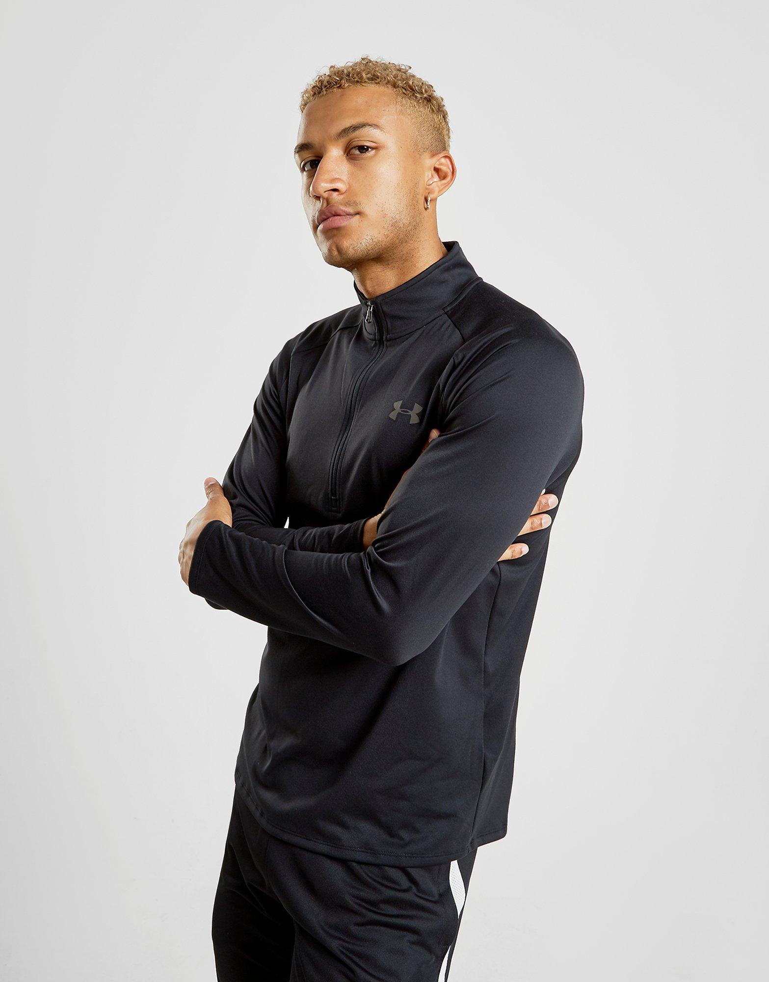 Step up your workouts with this men's Tech 1/4 Zip Top from Under Armour. In a black colourway, this top is made from durable poly fabric, which keeps you covered and feelin' comfy, while the Moisture Transport System keeps you cool and dry. With a 1/4 zip fastening, mock neck and raglan sleeves, this top is finished with signature Under Armour branding to the chest and nape. | Our model is 6'0" and wears a size medium.