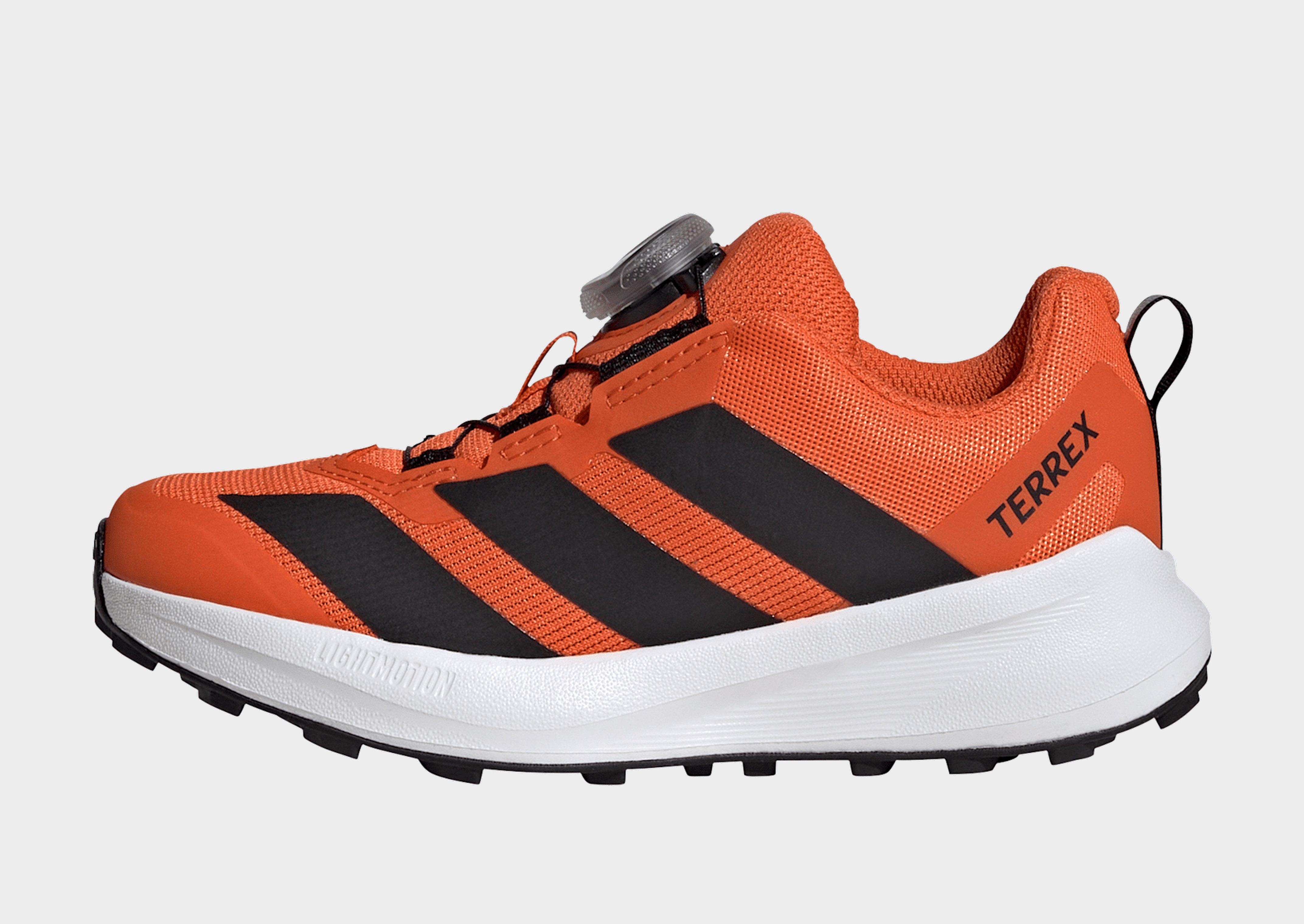 The Terrex Agravic BOA Trail Running Shoes are designed for young adventurers who love to explore. Offering a blend of style and performance, kids can run, jump and play with confidence.The Lightmotion midsole provides lightweight cushioning for a comfortable wear. Featuring the BOA® fit system, these shoes help feet feel secure in the great outdoors.Providing grip, the Traxion outsole lugs allow traction for trail running and outdoor adventures. Protective overlays offer durability and abrasion resistance.Our bold 3 Stripes on the lateral side make a statement and highlight adidas’ attention to detail. Whether for a casual jog or a technical trail, these shoes are ready for adventure.