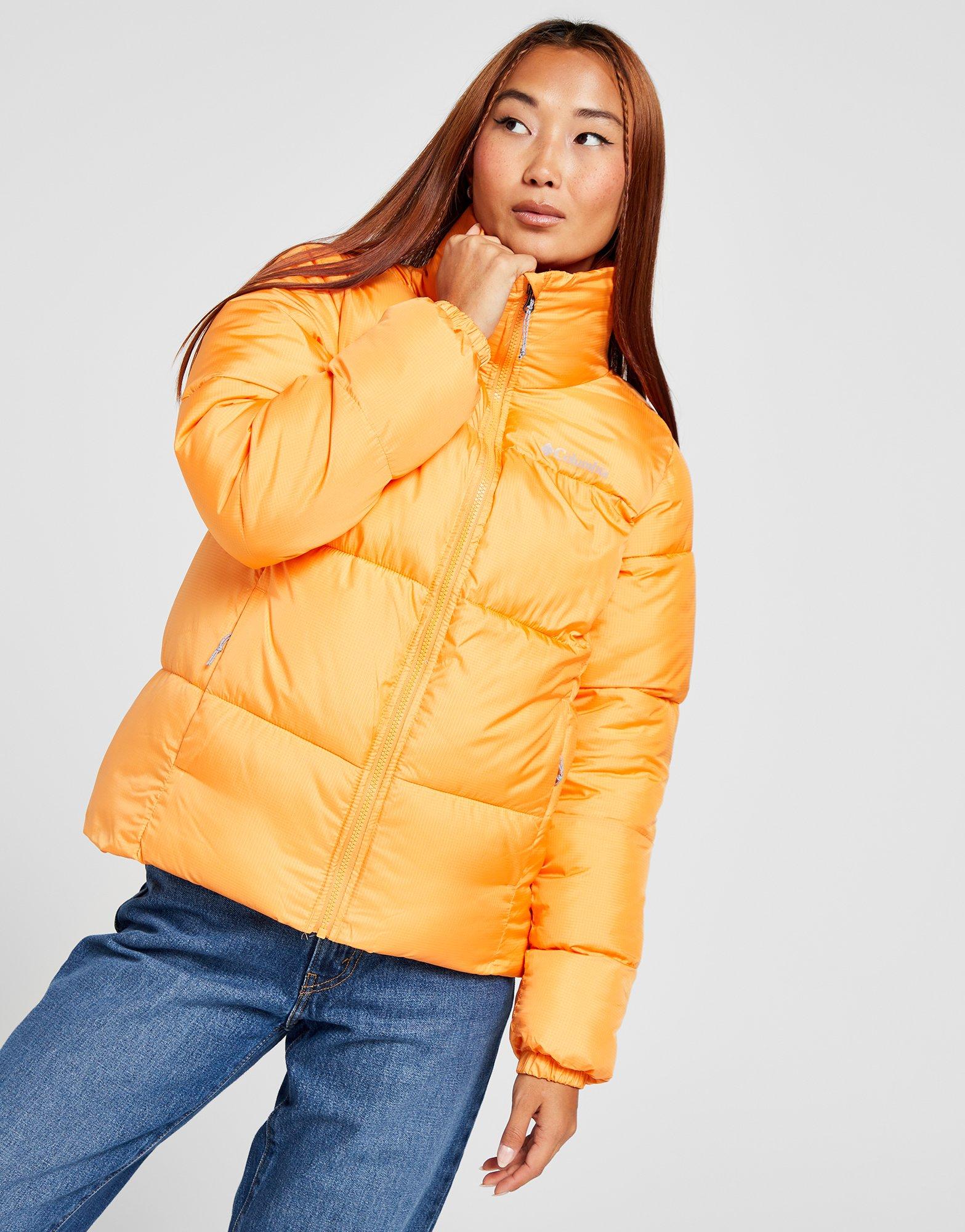 Get your cold-wewather staples in check with this women's Puffect Padded Jacket from Columbia. In an Orange colourway, this jacket has a smooth, water-resistant poly shell for protection when you're outdoors. It has a plush Thermorator insulation and a nylon lining to lock in the heat, and features a full-zip fastening with a funnel collar for cosy coverage. It has elasticated cuffs to secure the fit, and zipped front pockets for quick storage. Finished with signature Columbia branding at the chest. | Our model is 5'8" and wears a size small.