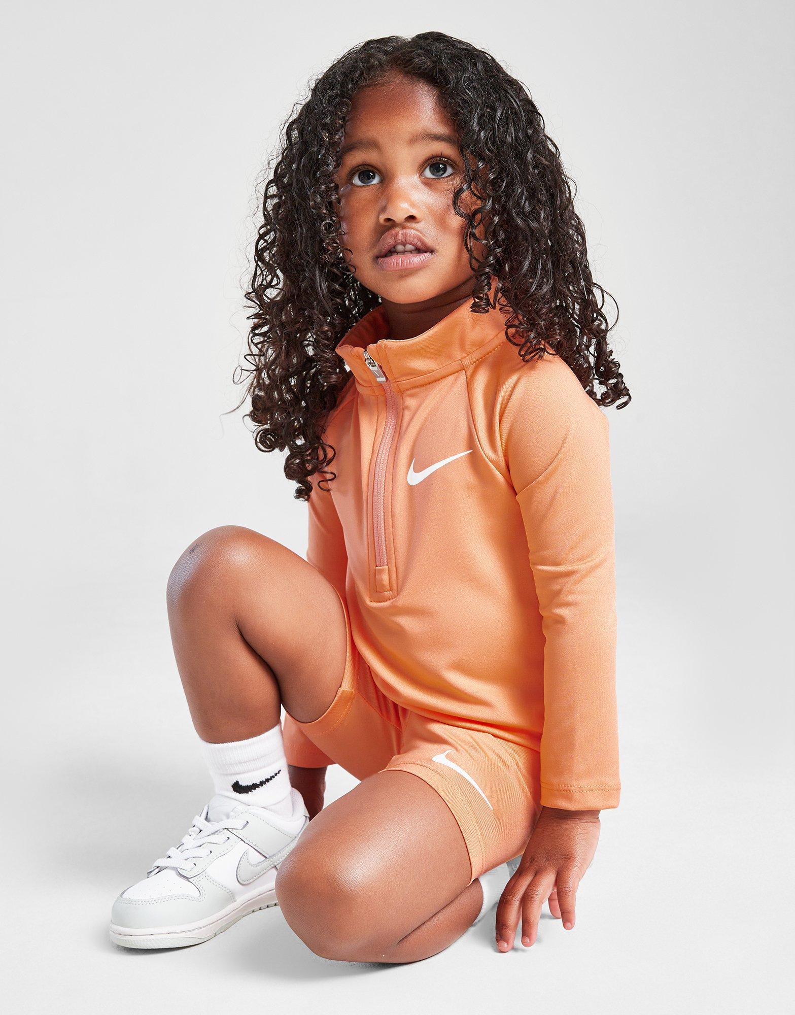 Exclusive to JD. Get 'em ready for a sporty day with this infant girls' Pacer 1/4 Zip/Cycle Shorts Set from Nike. In an Orange colourway, it features a light and breathable top with a 1/4-zip fastening, while the matching shorts have an elasticated waistband for a relaxed wear. Finished up with signature Swoosh branding. Machine washable.