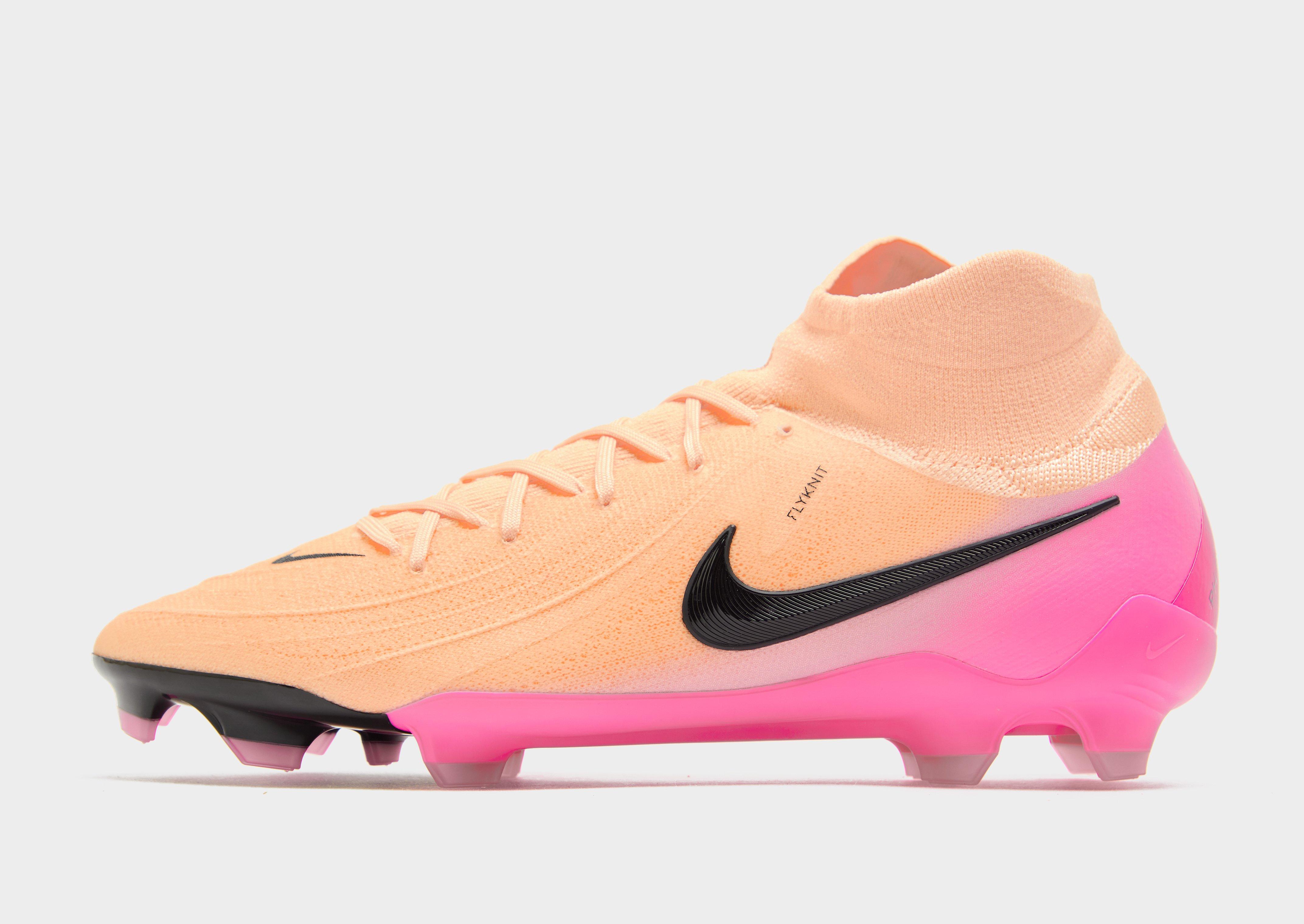 Level up your performance with these men's Phantom Luna 2 Pro FG football boots from Nike. In a Crimson Tint, Black and Pink Blast colourway, these boots have a stretchy Flyknit upper with grippy overlay for total ball control. They feature asymmetric lacing for a secure fit and a large touch surface, with a Flyknit cuff for extra support. Underfoot, they have a cushioned insole for added comfort, while the Nike Cyclone 360 traction pattern allows you to make quick cuts on the pitch. Finished up with signature Nike branding throughout.