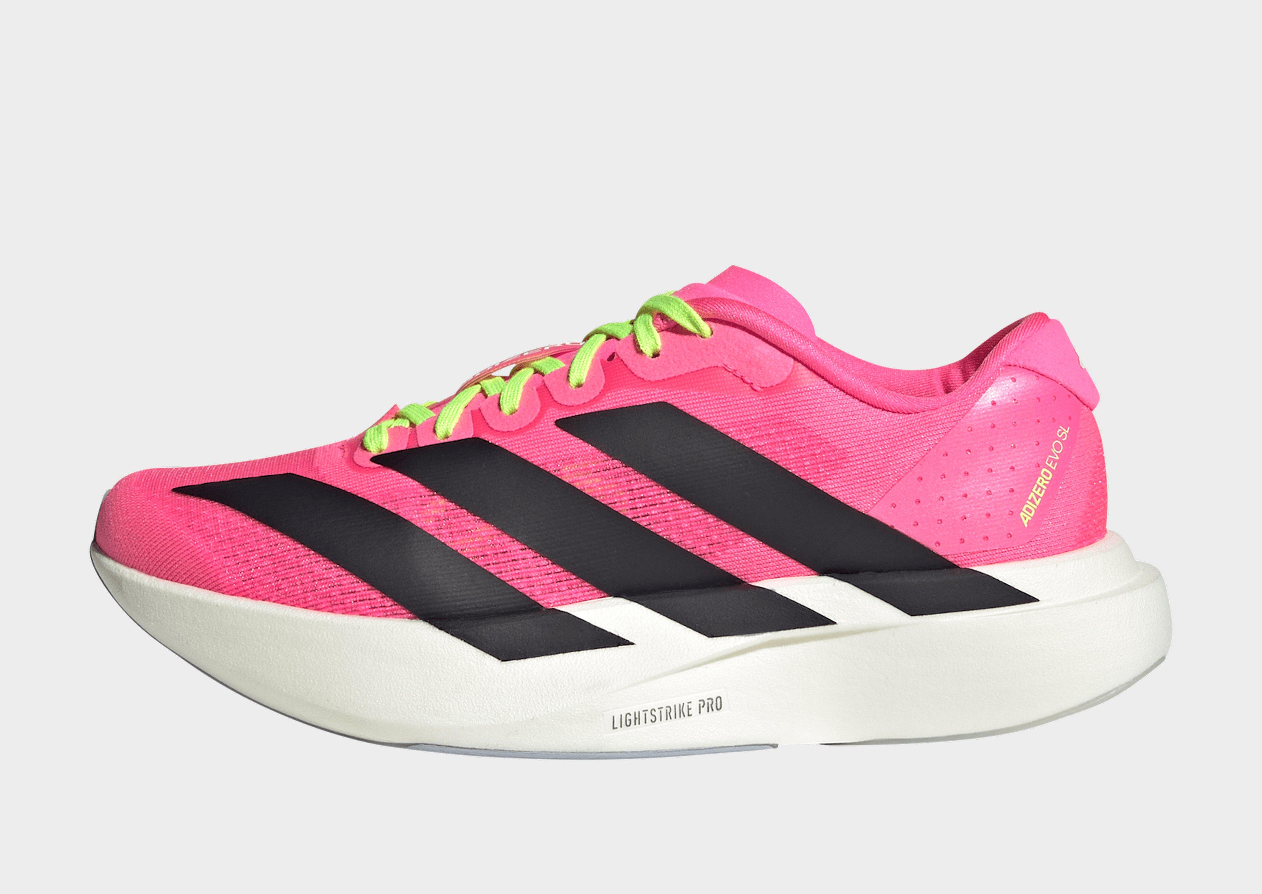 Say hi to the Adizero EVO SL shoes! These shoes, inspired by the record-breaking EVO 1, are designed for young athletes who love to run and play. The combination of synthetic and textile materials in the upper offer both durability and breathability.Light. Speed. adidas LightstrikePro is redefining the next generation of speed with a super-light midsole designed for dynamic, lightweight movement. With lace closure, these shoes provide a comfortable, secure fit during everyday movements and activities.The rubber outsole is designed for sufficient traction on various surfaces for confident moves. Whether it's for school, sports practice, or playtime, these shoes are a go-to choice for the little ones. Trust adidas to deliver quality, comfort and performance in every step.