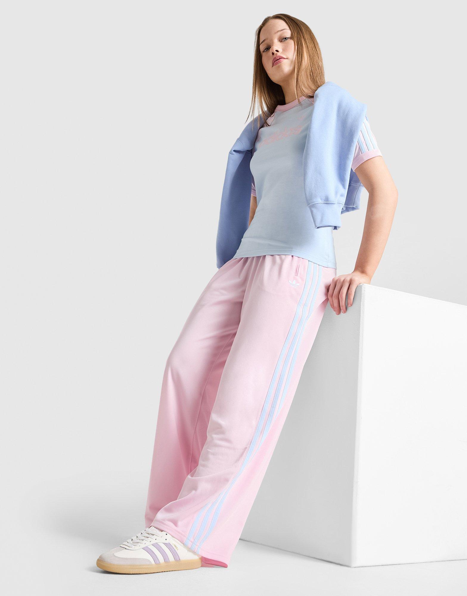 Bag some everyday 3-Stripes. These junior girls' Firebird Wide Track Pants from adidas Originals are exclusive to JD. They have an elastic, drawcord waistband for a relaxed wear, with wide legs for a roomy feel and side pockets for your stuff. They land in Clear Pink and Crystal Sky, with signature branding. Machine washable | KT9561