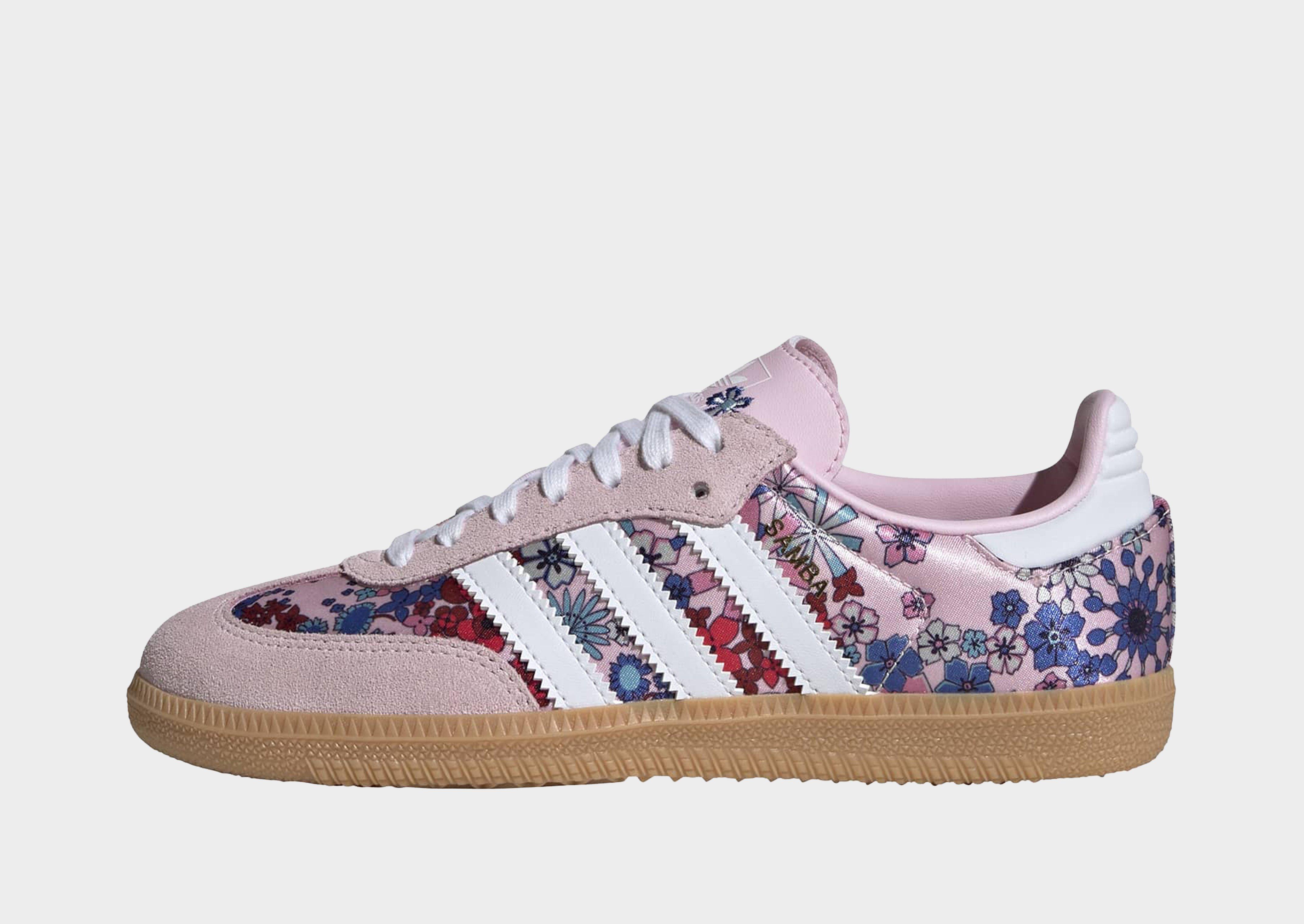 Bring bold energy to your rotation with these Samba OG x Liberty London creps from adidas Originals. In Clear Pink, they've got a textile upper with a smooth suede T-toe. They've got textile lining to amp up the comfort, with a gum rubber outsole for grippy traction. Finished with a playful Liberty print, Trefoil branding and 3-Stripes at the sides. | JQ2008