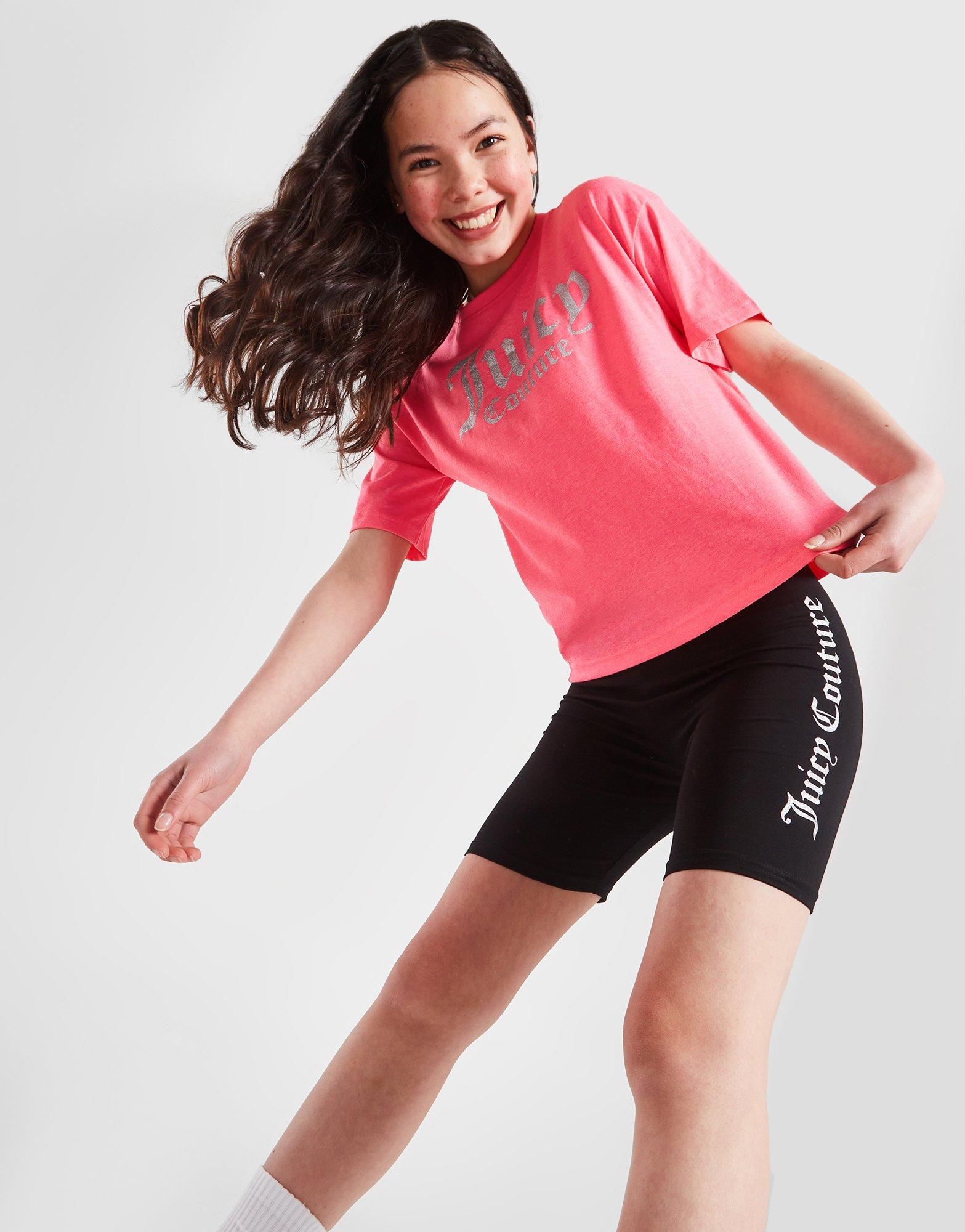 Grab JD exclusive heat with this junior girls' Glitter Boyfriend T-Shirt/Shorts Set from Juicy Couture. This set features a relaxed-fit tee that lands in a Pink colourway and is cut from a super-soft and lightweight cotton fabric for all-day comfort. The matching tight-fit shorts come in a Black colourway and are made from a stretchy cotton fabric for a snug, supportive feel. Finished up with Juicy Couture branding to the chest and thigh. Machine washable.