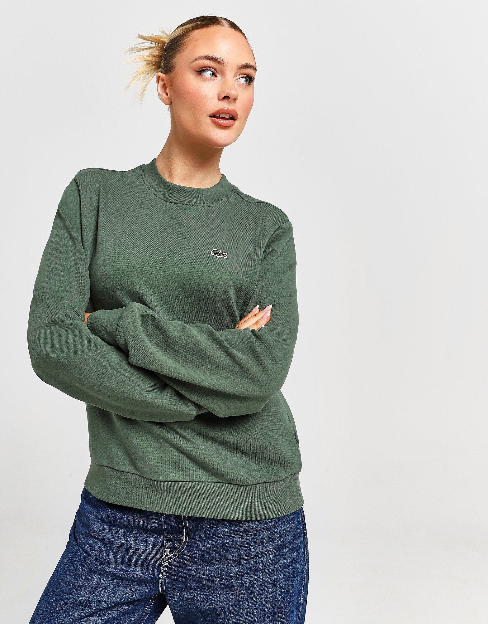 Rep a timeless layer from Lacoste with this women's Small Logo Crew Sweatshirt. In a Dark Green colourway, this sporty classic is cut from organic unbrushed cotton fleece fabric, with stretchy ribbed trims for added structure. It has a crewneck collar and long sleeves for a standard fit. Finished with the iconic Crocodile embroidered to the chest. Machine washable. | Our model wears a size small.