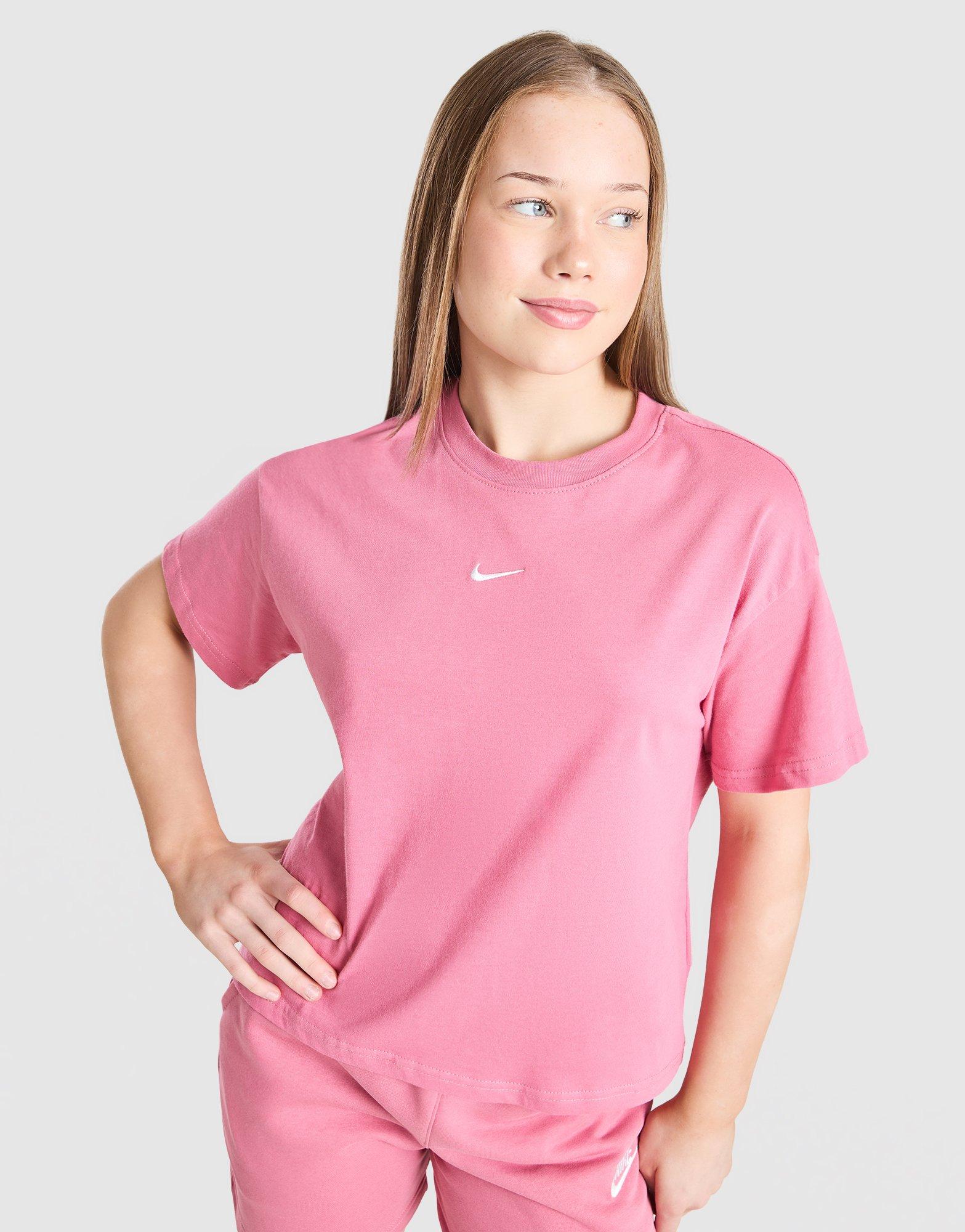 Enter your pink era with this junior girls' Boxy T-Shirt from Nike. In Peony, this roomy tee has a thick crew neckline, dropped shoulders and a slighty cropped hem for a boxy fit. Made from soft cotton, it's finished off with the Swoosh on the chest. Machine washable.