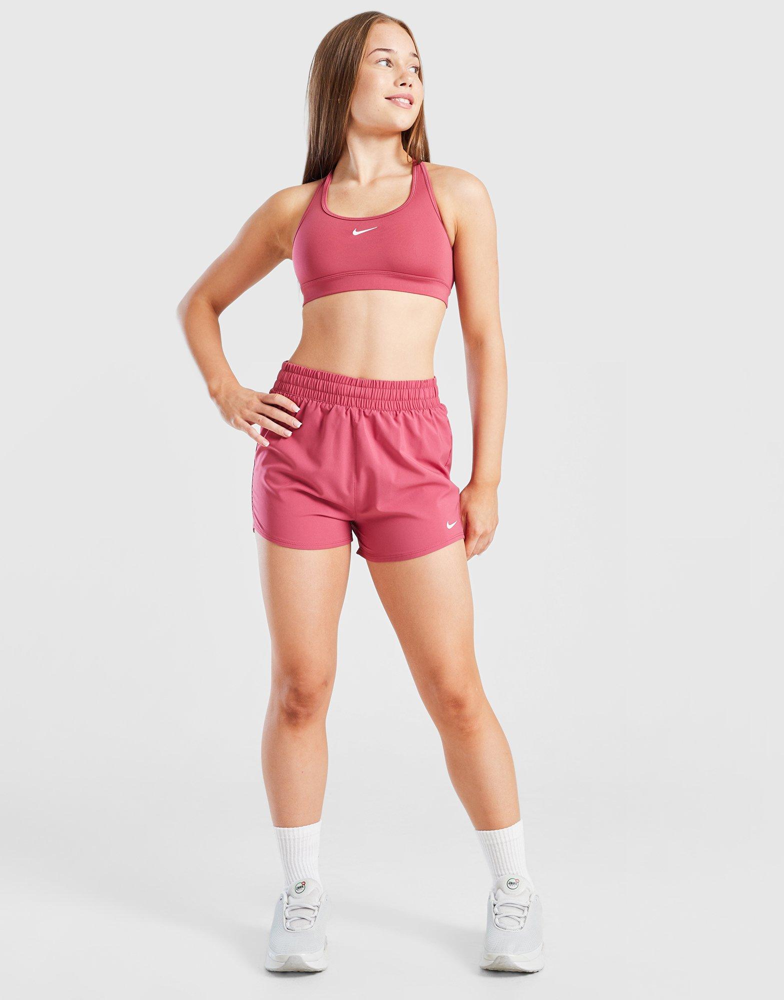 Get after your goals in these junior girls' Nike One Woven Shorts. In a bold Sweet Beet colour, these shorts are cut from smooth, lightweight woven fabric. A breathable lining and sweat-wicking Dri-FIT tech keeps you cool. An elastic waist feels snug and secure. Finished with the iconic Swoosh logo above the hem. Machine washable.
