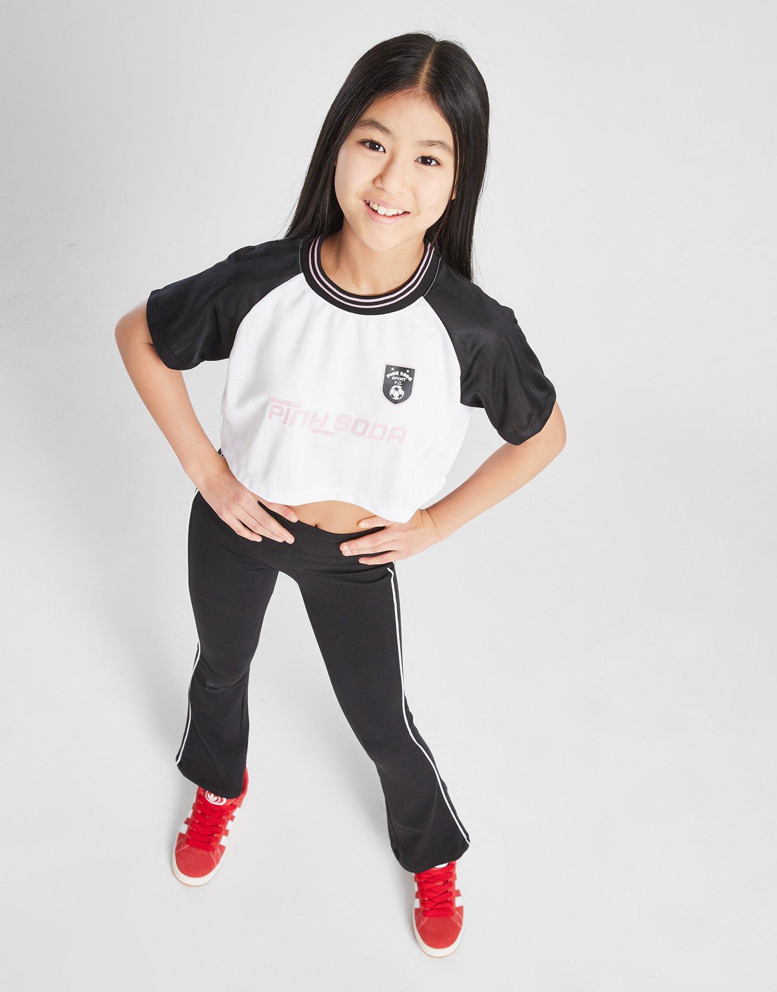 Bring a matchday vibe to your look with this junior girls' Match Cropped T-Shirt from Pink Soda Sport. In a White, Black and Pink colourway, this JD-exclusive tee is cut from smooth polyester for a light, breathable wear. It features short sleeves with a ribbed crew neckline and has a cropped hem for a laidback wear. Finished up with with football-inspired Pink Soda Sport branding. Machine washable.