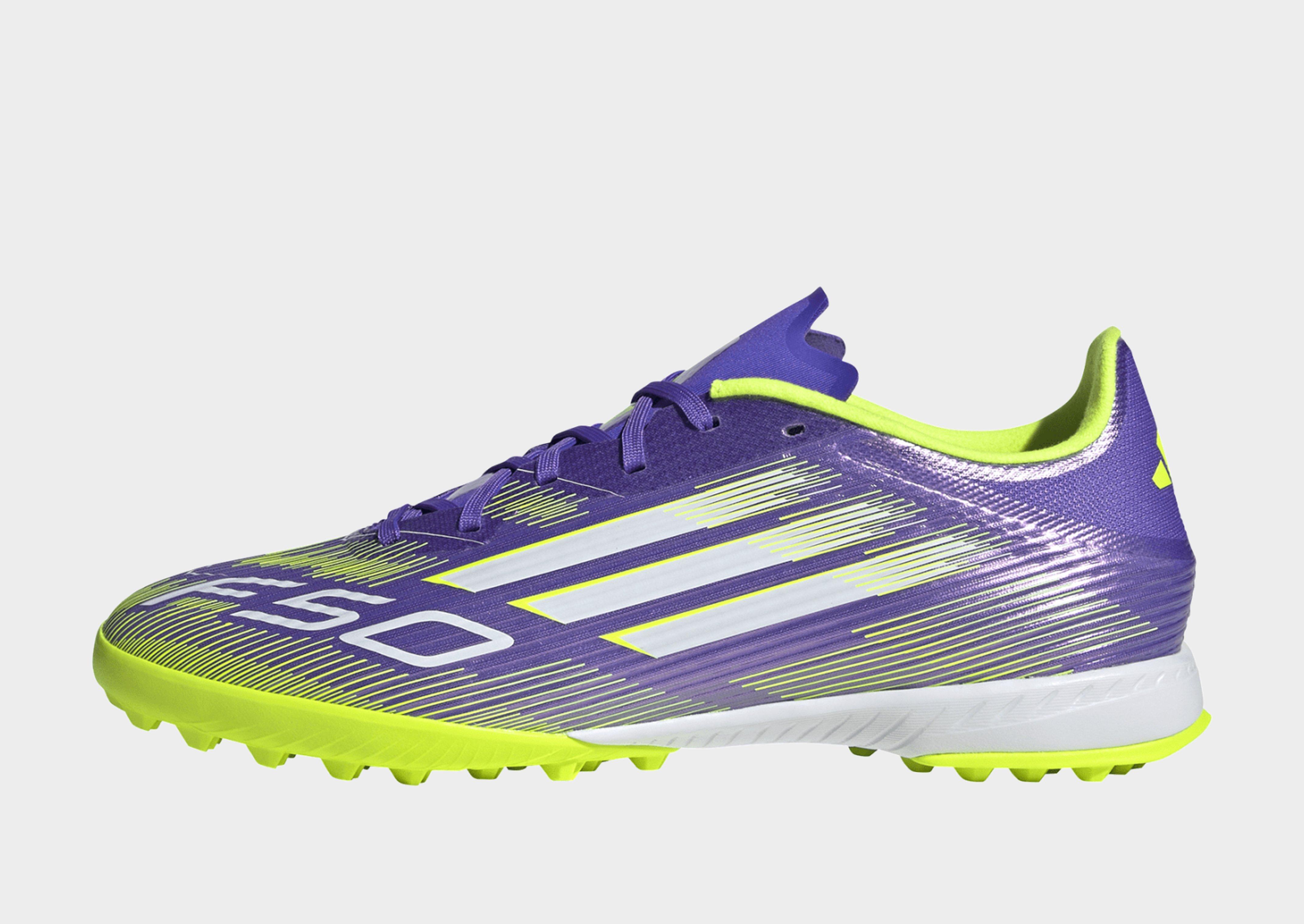 Find your fast to truly express yourself on the field. Feel the rush in adidas F50 boots engineered for speed. Standing out with an eye-catching Sprintgrid print, the Fiberskin upper on these League football boots employs an adaptive Tunnel Tongue for rock-solid lockdown. An EVA midsole and lug rubber outsole team up for comfortable sprinting on artificial turf surfaces.