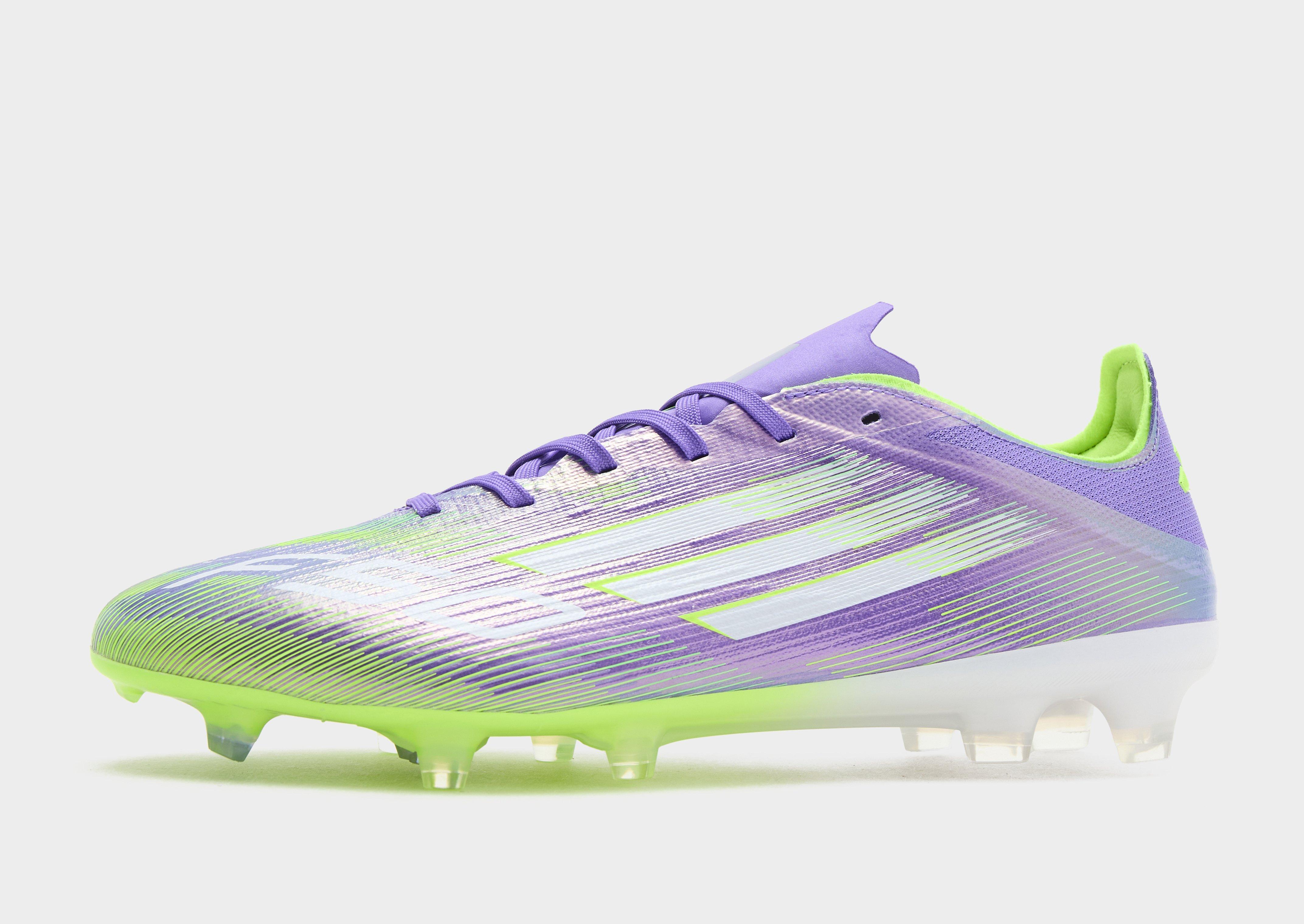 Bring speed to your play with these men's F50 Pro FG football boots from adidas. In a Purple Rush, Cloud White and Lucid Lemon colourway, these boots have a lightweight Fibertouch upper with Sprintweb 3D texturing for a close touch. A lace closure locks you in, with a synthetic lining for a secure fit. Underfoot, a Sprintshell 360 outsole brings grip and acceleration on firm ground. Finished up with adidas F50 branding. | JH7683