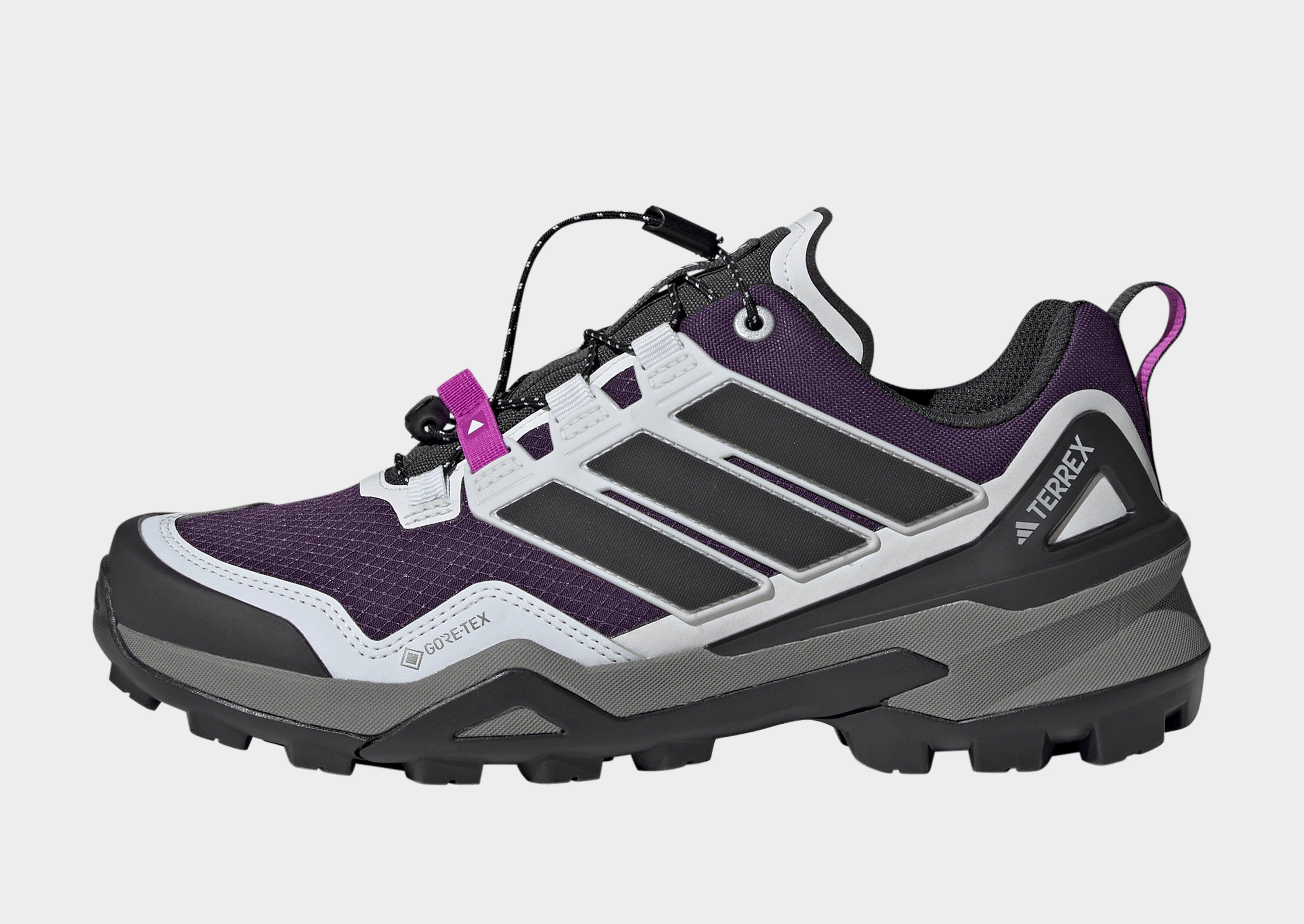 Designed for hikes and rugged summit scrambles, these adidas Terrex Skychaser hiking shoes balance protection, control and comfort for moving fast on and off the trail. They combine the agile, responsive feel of trail running shoes with the support and durability of hiking shoes. Step-in comfort and a lightweight feel keep you focused on the trail ahead. A waterproof GORE-TEX EPE membrane seals out wet conditions while letting your feet breathe and regulate temperature. A ripstop upper with abrasion-resistant overlays keeps them light and durable. The all-conditions grip of Continental™ Rubber maintains traction across all surfaces, wet or dry. The ultralight Lightstrike cushioning allows for responsive feel and agile footwork.By choosing recycled, adidas are able to reuse materials that have already been created, which helps to reduce waste. Renewable materials choices will help us to remove our reliance on finite resources. Our products made with a blend of recycled and renewable materials feature at least 20% total of these materials.