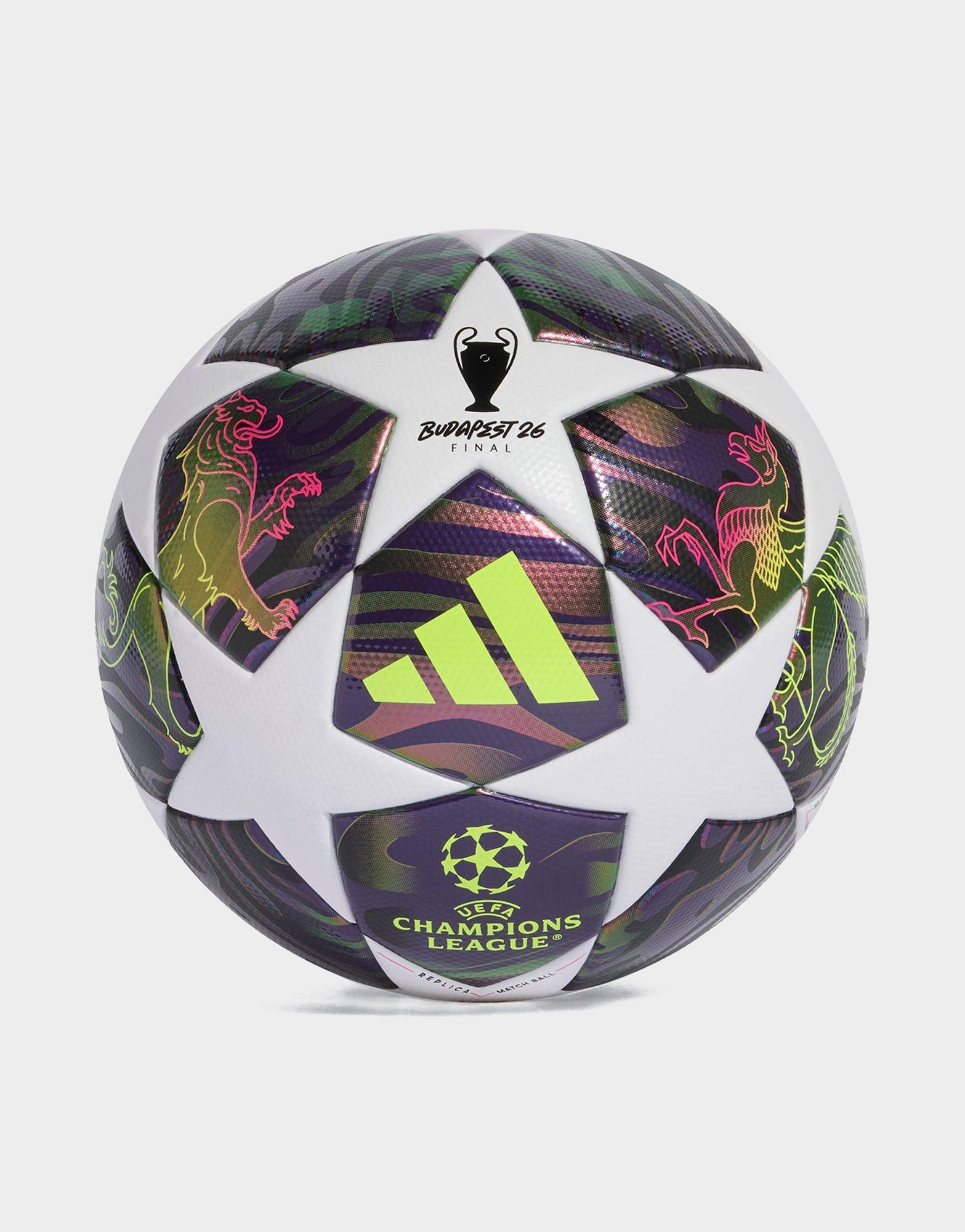 Designed for those who live and breathe the beautiful game, the UEFA Champions League Final League Ball is crafted to withstand the rigours of both football matches and training sessions.Engineered with high durability in mind, it offers outstanding ball control, allowing you to perfect your skills on the pitch. Its laminated surface gives a seamless finish, providing a consistent touch and feel when you kick it. Whether you're practising your dribbling or honing your goal-scoring accuracy, this ball is built to help you excel. With FIFA-quality certification, it has passed rigorous tests on circumference, weight, rebound, and water absorption. Trust in adidas to deliver a ball that meets high standards of performance and quality.