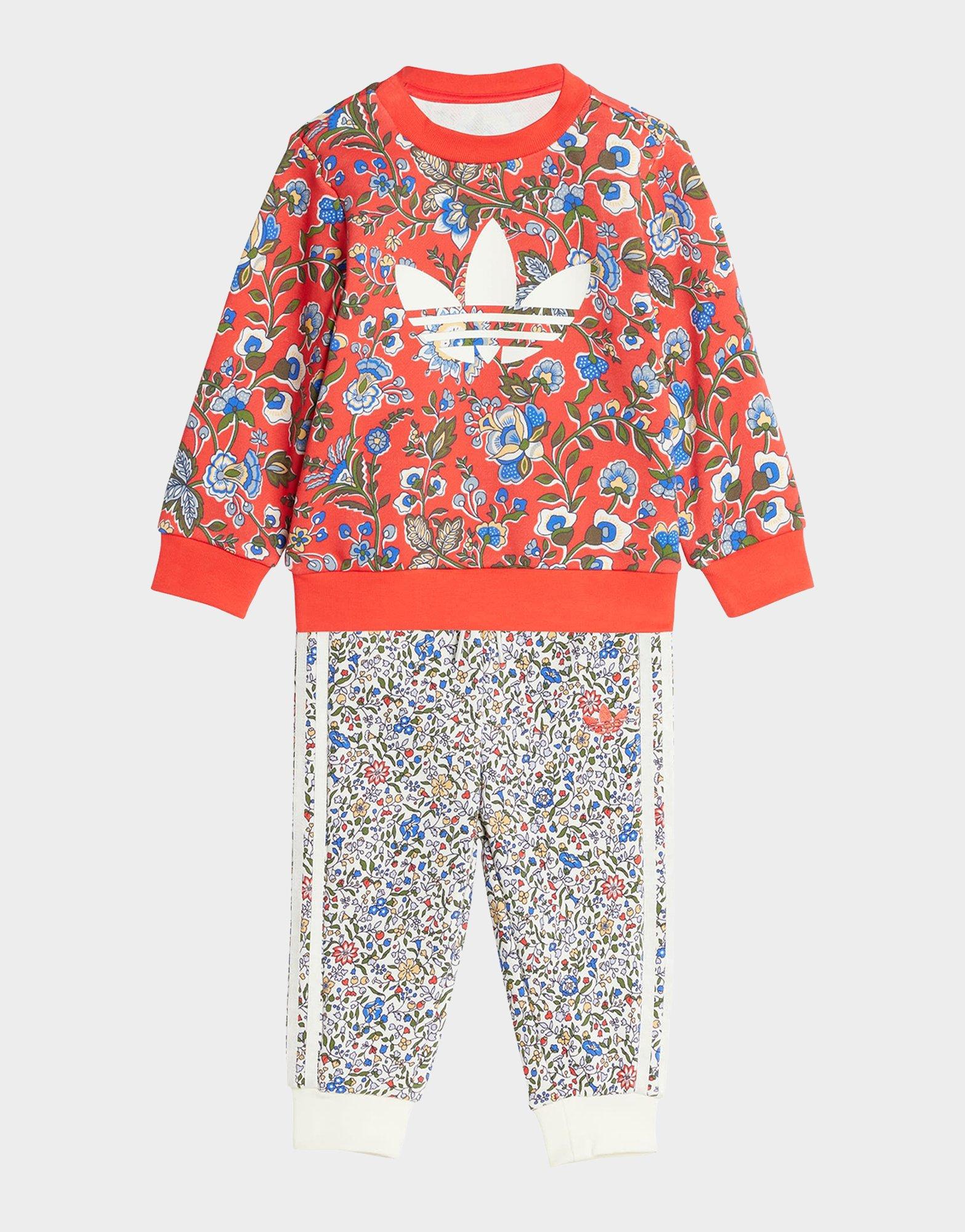 Created in collaboration with Liberty London, this infants' adidas crew set is covered in a colourful print. The pattern features Indian chintz-style florals in a flowy formation. Made from soft French terry fabric, this outfit keeps little ones comfortable during playtime or downtime.