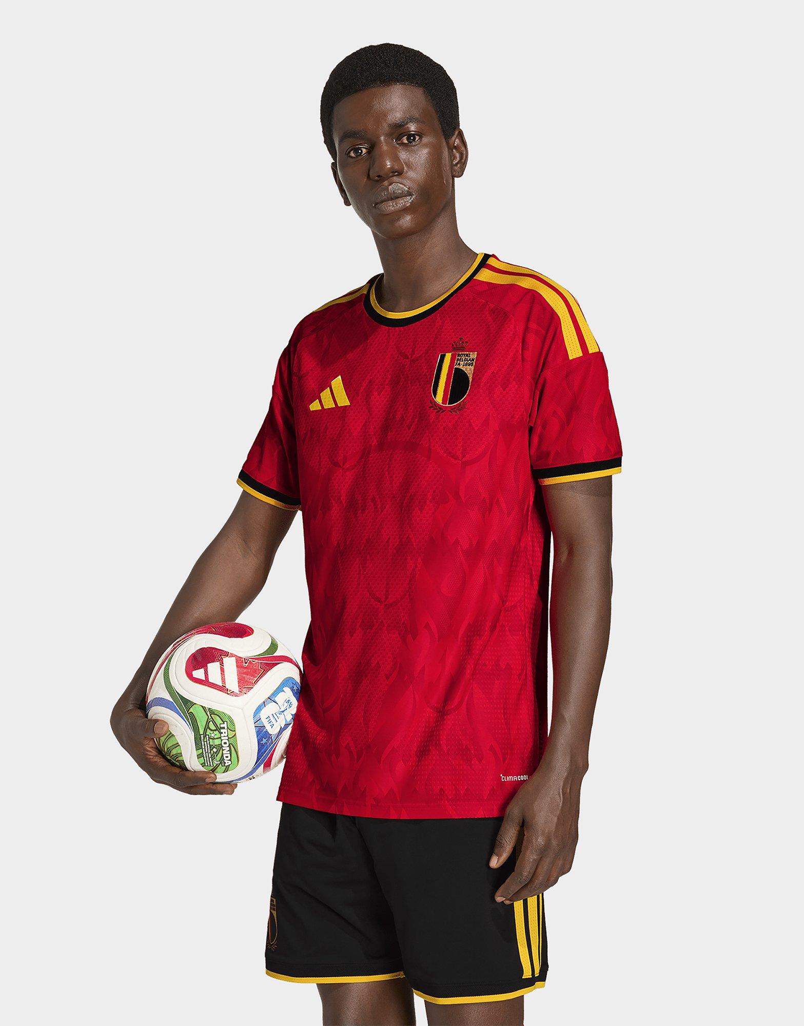 The Belgium 26 Home Authentic jersey is a bold expression of national pride and football identity. Inspired by the fearless legacy of the RBFA and the team's determined spirit.Crafted in transfer knit jacquard, it delivers a slim, performance-driven fit that moves with you. Made using adidas Climacool+ technology, where expert engineering and advanced materials unite for a cool, dry and distraction-free performance.A lenticular heat transfer crest and logo add a dynamic edge, while perforated 3-Stripes tape references adidas heritage through technical detail. Whether you're on the pitch or in the stands, this jersey brings precision, joy and power into play.