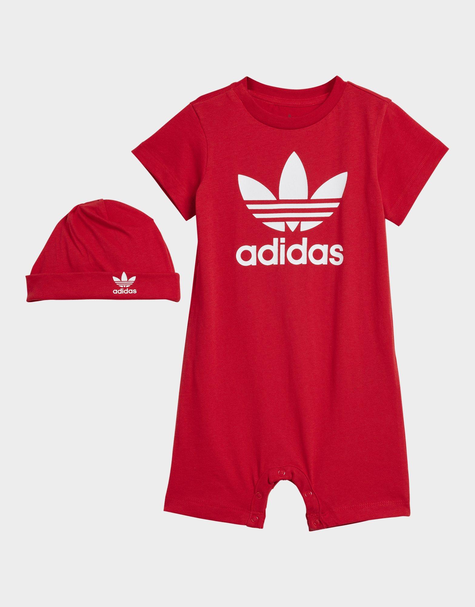 The perfect gift. This adidas set for infants is casual, comfortable and put together for little ones to rock authentic sport style. The loose-fit jumpsuit is made of soft cotton and has a snap-button crotch for easy on and off. The comfortable beanie keeps your baby's head warm whether they're playing in the park or cuddled up inside.