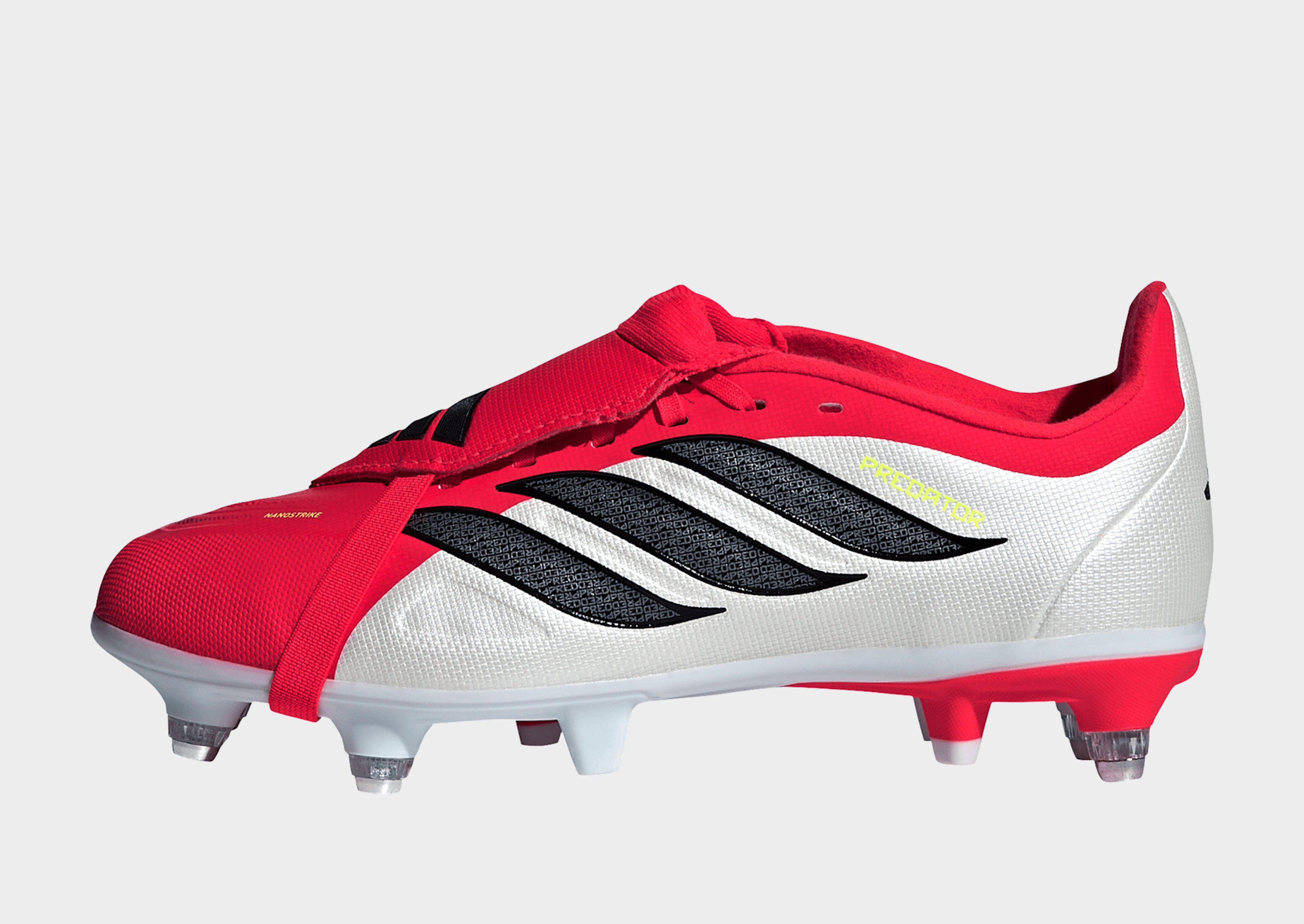 Encourage your child to play with confidence in the Predator League Fold-Over Tongue Soft Ground Football Boots, an innovative pair designed for young football enthusiasts.These boots feature Nanostrike technology for softness and lightness, integrated with a haptic overlay for striking precision, and Powerspine technology for midfoot stability.The lace closure offers adjustability for growing feet. Designed for traction and rotational agility on soft ground, these functional boots support your child's performance.