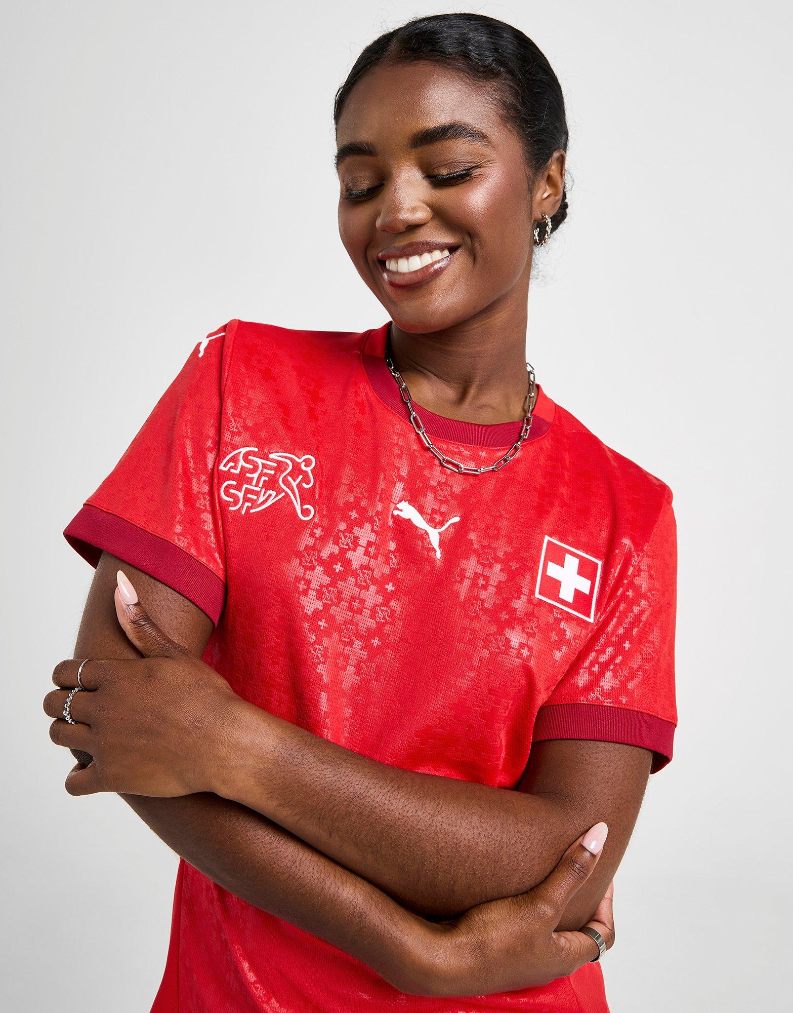 Get behind your nation with this women's Switzerland 2025 Home Shirt from PUMA. In a PUMA Red colourway, this standard-fit shirt is cut from cool and breathable polyester that's lightweight and easy to wear. It features short sleeves with a ribbed neckline and is equipped with dryCELL tech to wick away sweat. Finished up with the PUMA logo and Switzerland crest to the chest. Machine washable.