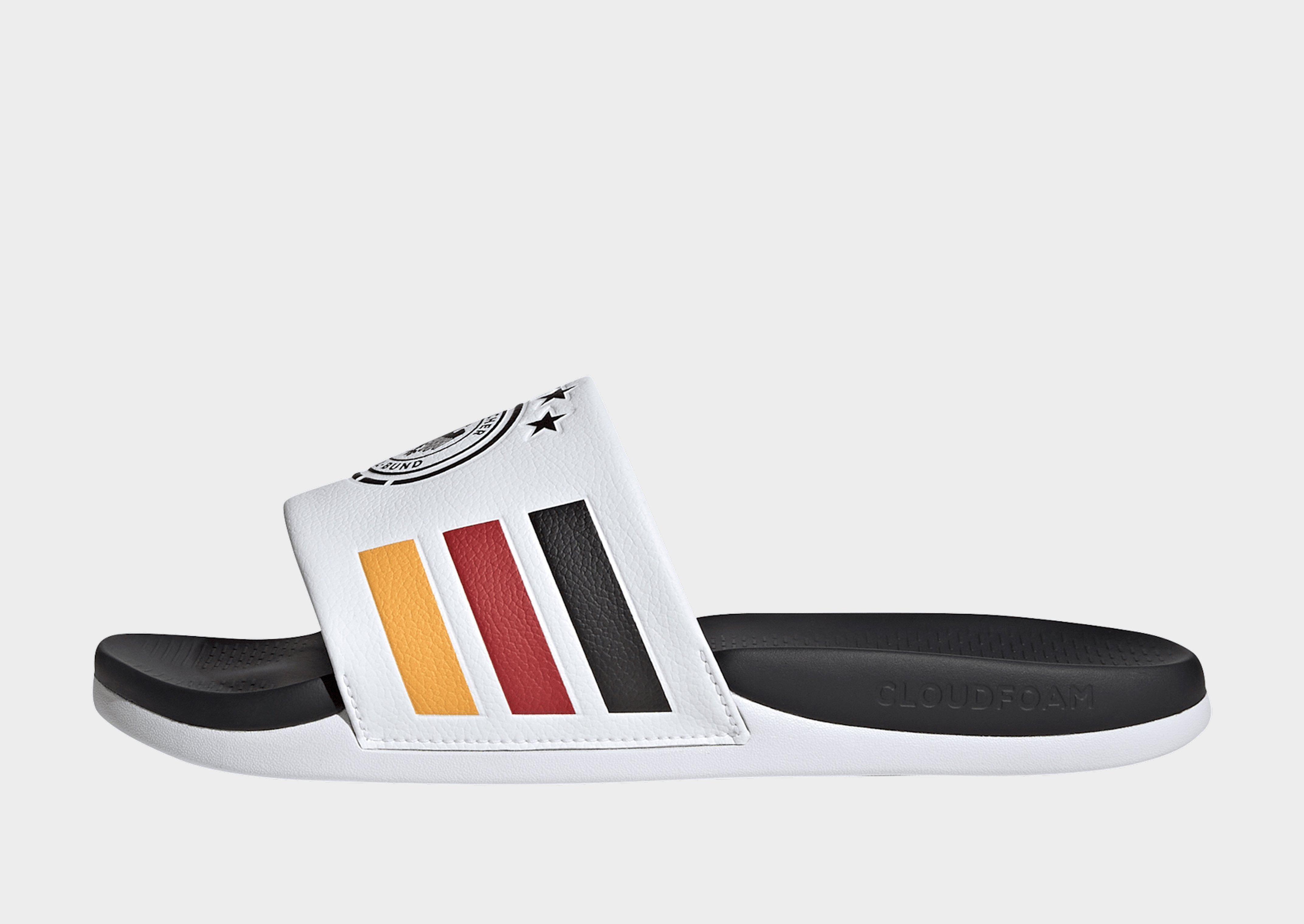 The Adilette Comfort 2.0 Germany Slides blend heritage with a modern design. Featuring a regular fit and an adjustable strap for a secure, easy wear, these sliders bring comfort and our quality to your feet.Cloudfoam cushioning helps to reduce pressure during movement. The lightweight synthetic outsole offers dependable traction, while the smooth lining makes them easy to slip on and off.A versatile option, these slides are suitable for a variety of environments. Their clean design pairs classic adidas styling with a focus on comfort, making them a staple choice for downtime.