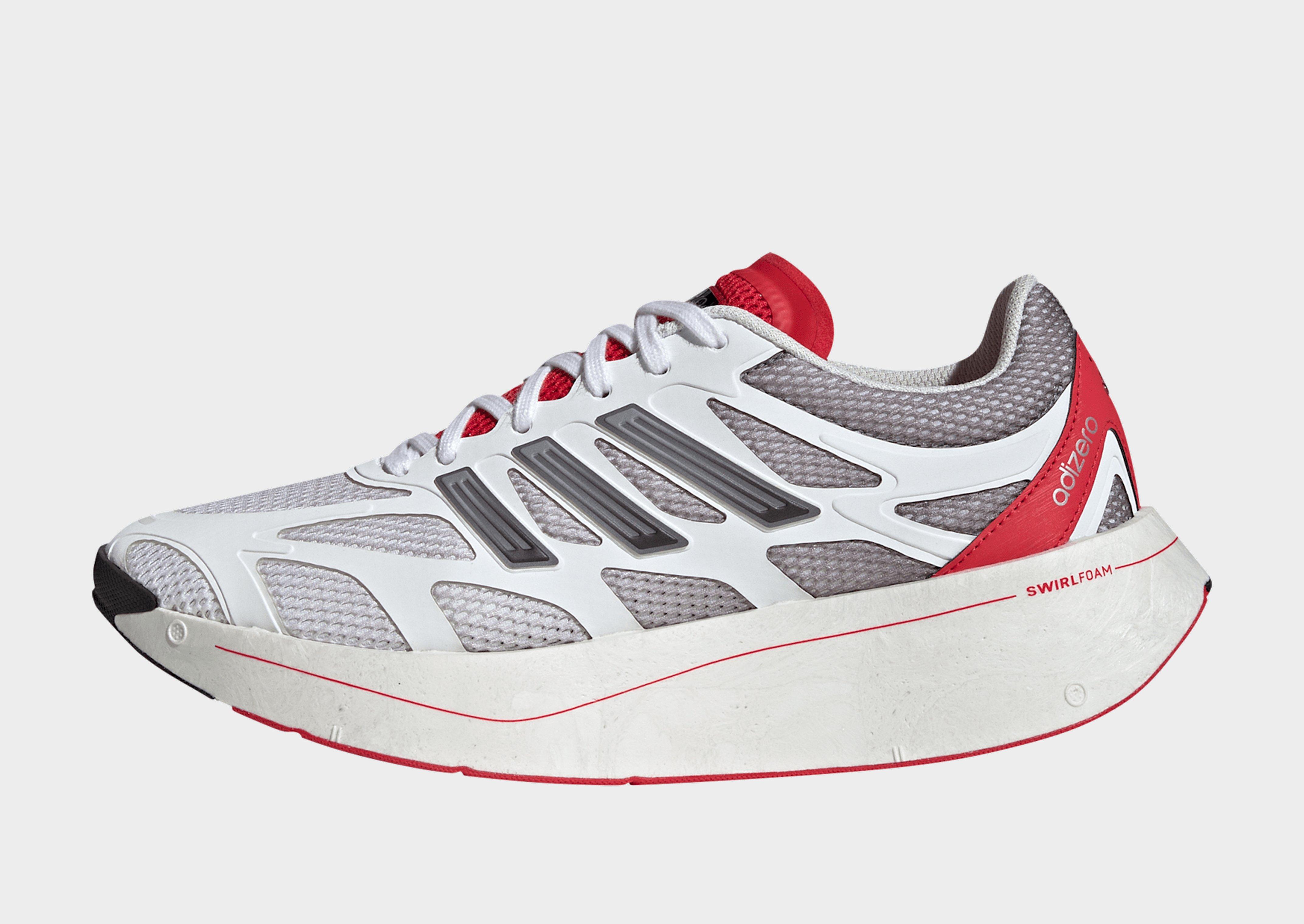 An icon of the running world for over 20 years, the Adizero family serves as the inspiration behind these adidas Adizero Aruku shoes — specifically the famed Adizero PR. Roll through your day on the radically curved rocker midsole that smooths every transition between heel strike and toe-off. Innovative Swirlfoam cushioning infuses nitrogen into the foam for a superior sensation with precisely placed reinforcements — a true revolution in comfort. Upper details hook back to the heritage model, with comfort details like a soft lining and synthetic suede tongue.