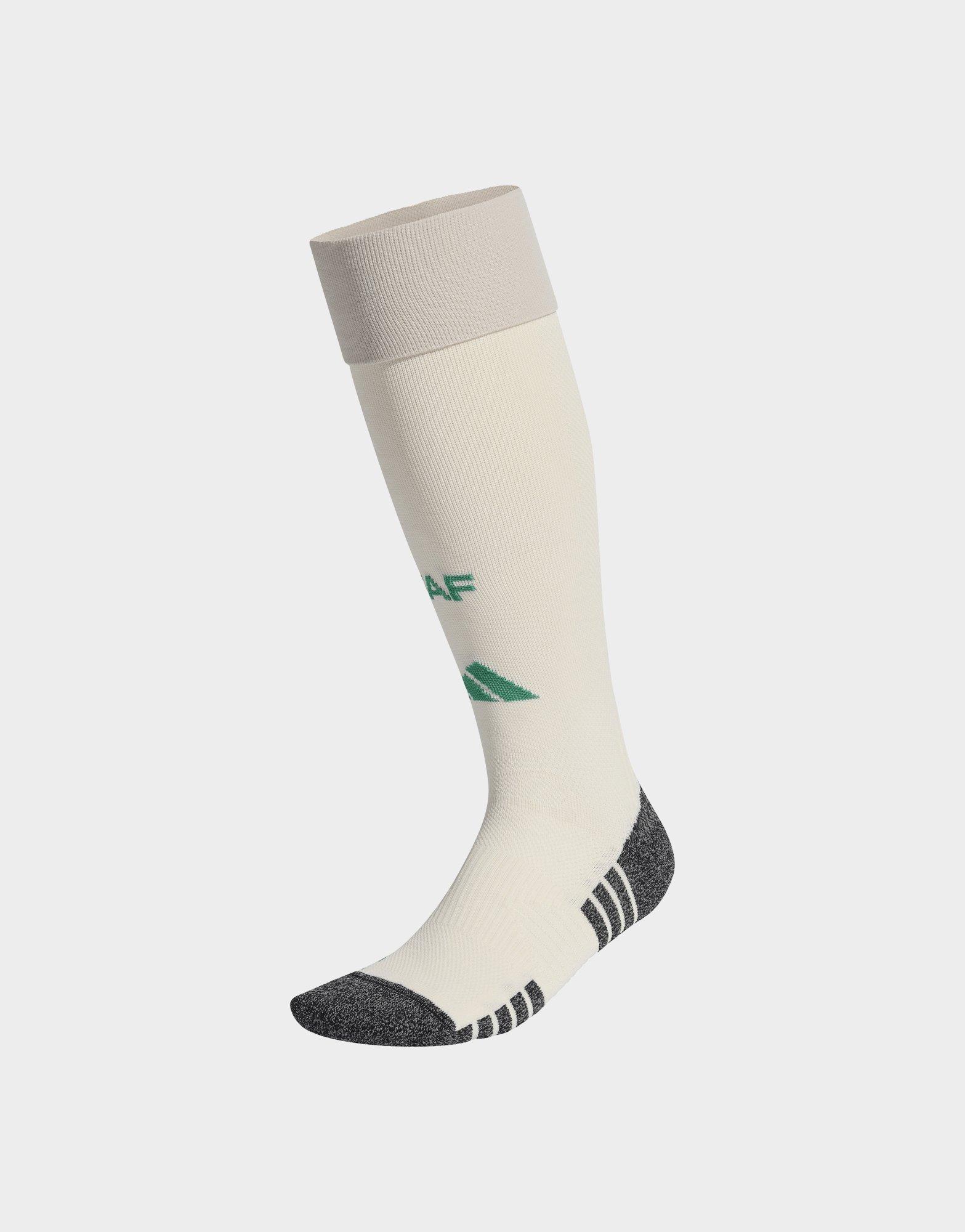 Inspired by the rich tapestry of Algerian landscapes, the Algeria 26 Home Socks are more than just a part of your kit—they're a journey across the country's diverse terrains, from the rocky deserts to vibrant oases. Designed for both players and fans, they embody the spirit of Algerian football.Made with quality materials, these socks promise durability and a soft feel, allowing you to focus on the game without distraction. Engineered BoS branding offers a snug fit for comfort and support throughout the match, while the federation’s initials as a sign-off are a nod to the team's heritage and identity.Whether you're playing or cheering from the stands, these socks are a testament to your unwavering support for the team. Embrace the journey and wear your passion with this blend of tradition and performance.