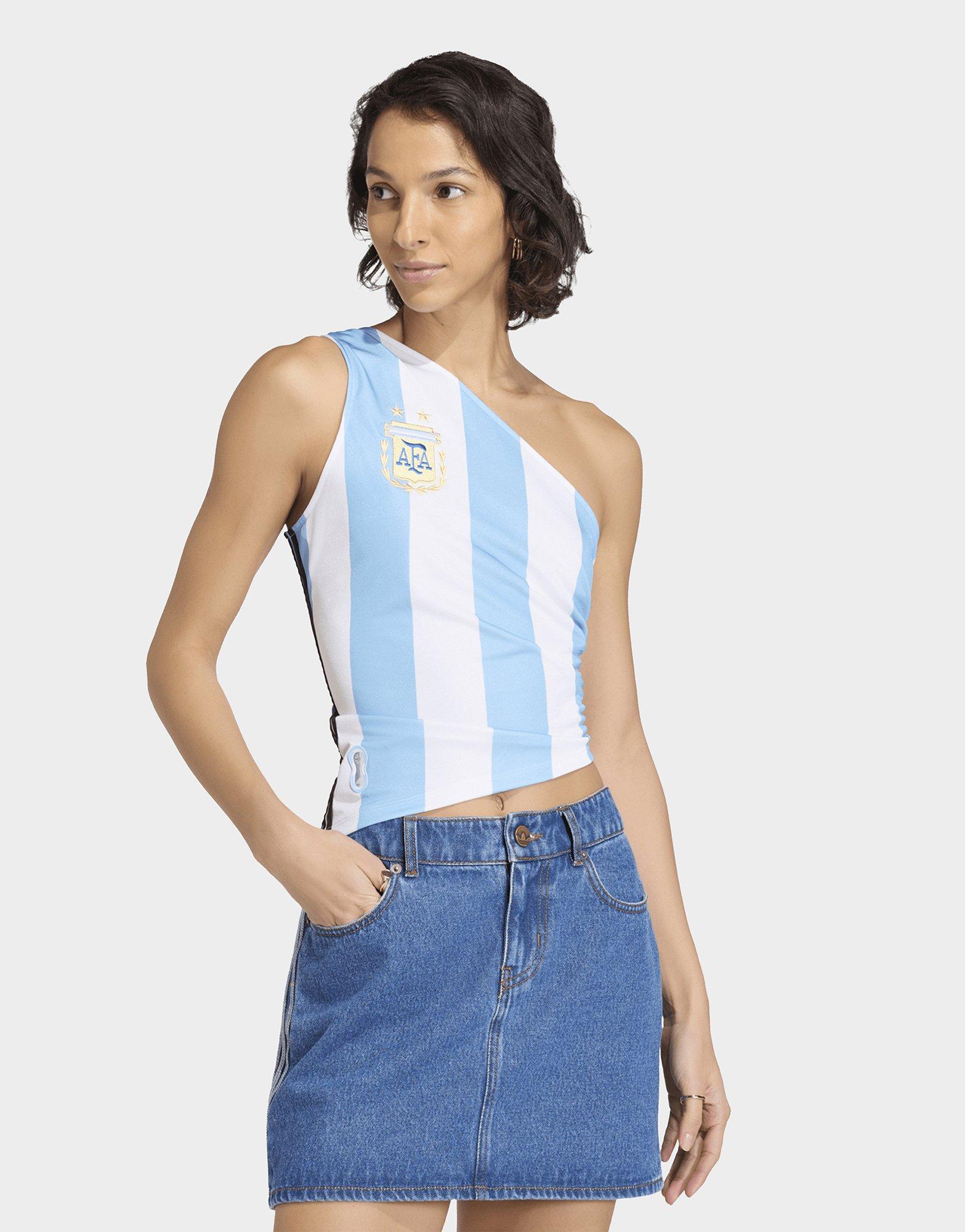 The Argentina Reconstructed Bringback Jersey is a celebration of heritage and innovation. Crafted from pique fabric, this jersey offers a slim fit that flatters and supports, making it a versatile addition to any wardrobe.The off-the-shoulder neckline adds a touch of elegance, while the drawcord closure provides a comfortable and adjustable fit. From cheering on your team to enjoying a casual day out, the jersey is your go-to for effortless style and comfort.adidas Originals continues to push the boundaries of fashion with this unique piece, blending classic football aesthetics with contemporary design elements. Go ahead and add this trendy jersey to your collection.