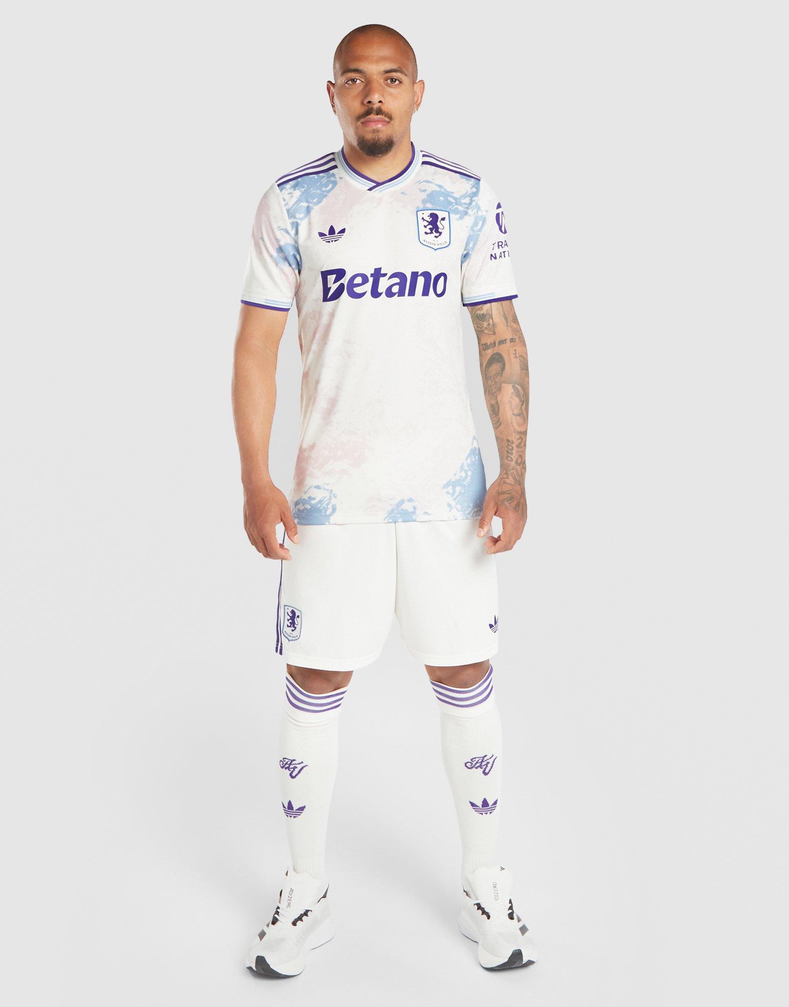 From Villa Park to the pitch. These men's Aston Villa FC 2025/26 Third Shorts from adidas Originals are cut from light, breathable fabric. In Off White, they feature Energy Ink details that nod to the stained-glass windows at the stadium. They have an elasticated, drawcord waist to adjust the fit. Mesh panels for ventilation. And AEROREADY tech to wick away sweat. Signed off with 3-Stripes, a Trefoil logo and a woven Aston Villa crest. Machine washable. | KA0857