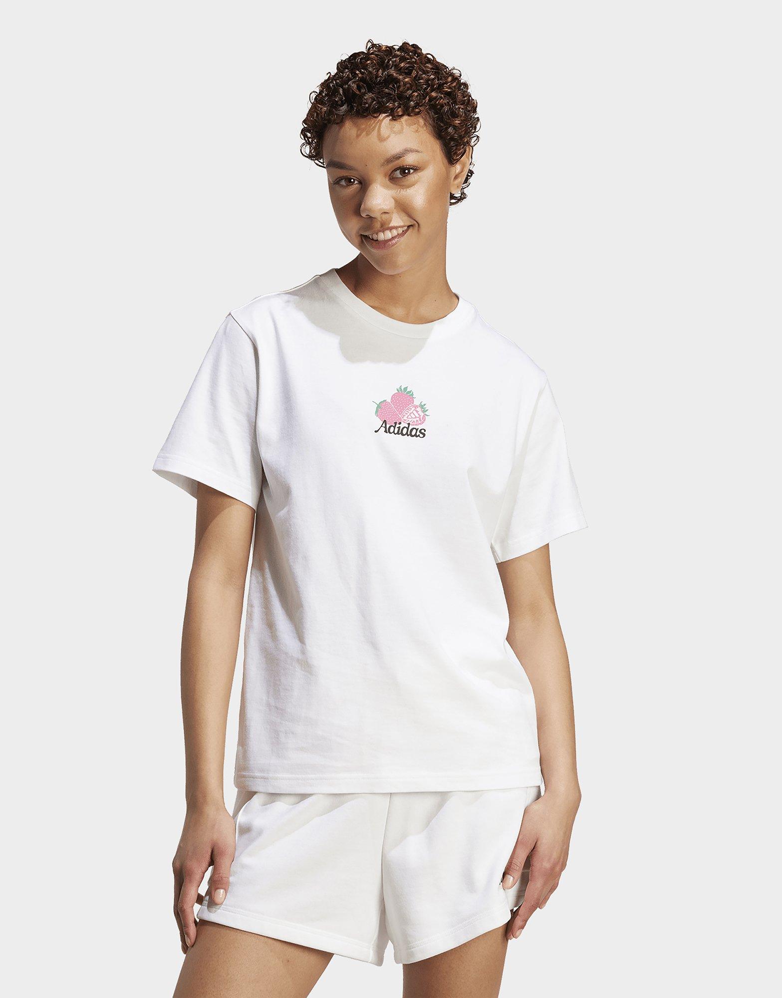 Refresh your look in this adidas tee. Whether you're into leaning a healthy lifestyle or you just think strawberries are cute, this shirt lets you show your love for the sweet summer fruit. Made from soft cotton, this shirt keeps the comfort coming all day long.