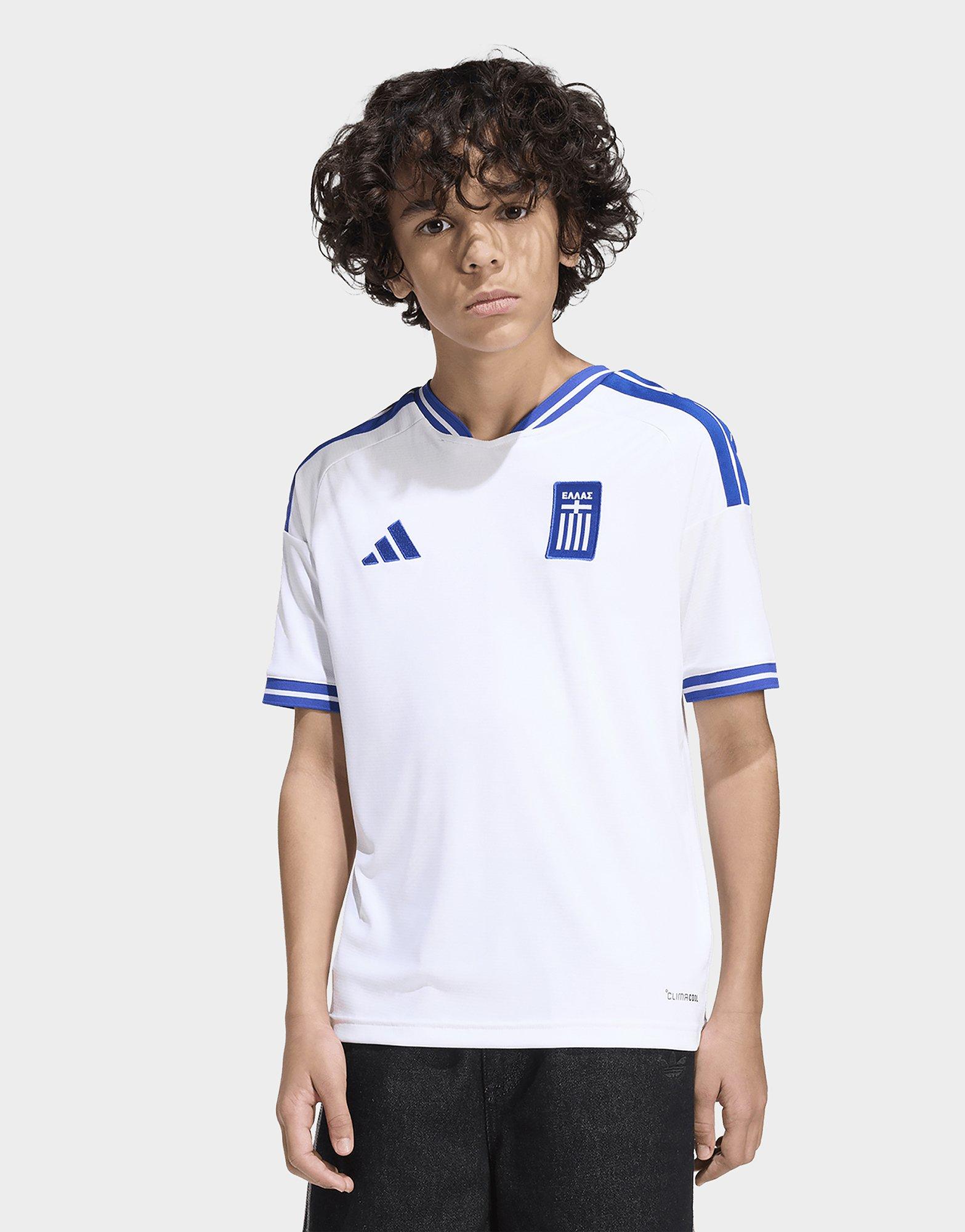 Introducing the Greece 26 Home Jersey, where tradition meets modern performance. Inspired by the legendary partnership between adidas and the Greek Football Federation, this stylish long-sleeved football jersey is designed to make youngsters feel proud and confident both on and off the pitch.Engineered for active kids, the jersey features Climacool to wick and disperse sweat for a cool, dry and distraction-free performance, whether they're playing football or cheering on their favourite team.Designed in a regular fit creating a sleek silhouette, with a seasonal collar for a classic feel and long sleeves for extra coverage. Rounding off the jersey is the sewn-on federation logo and a pirate ship sign-off, honouring the Greek team's iconic nickname, the Piratikos.Crafted with attention to detail and featuring an embroidered adidas logo and laid-on 3-Stripes, your child will enjoy a stylish and iconic look. Let them embrace the football fever and share their passion for the game.
