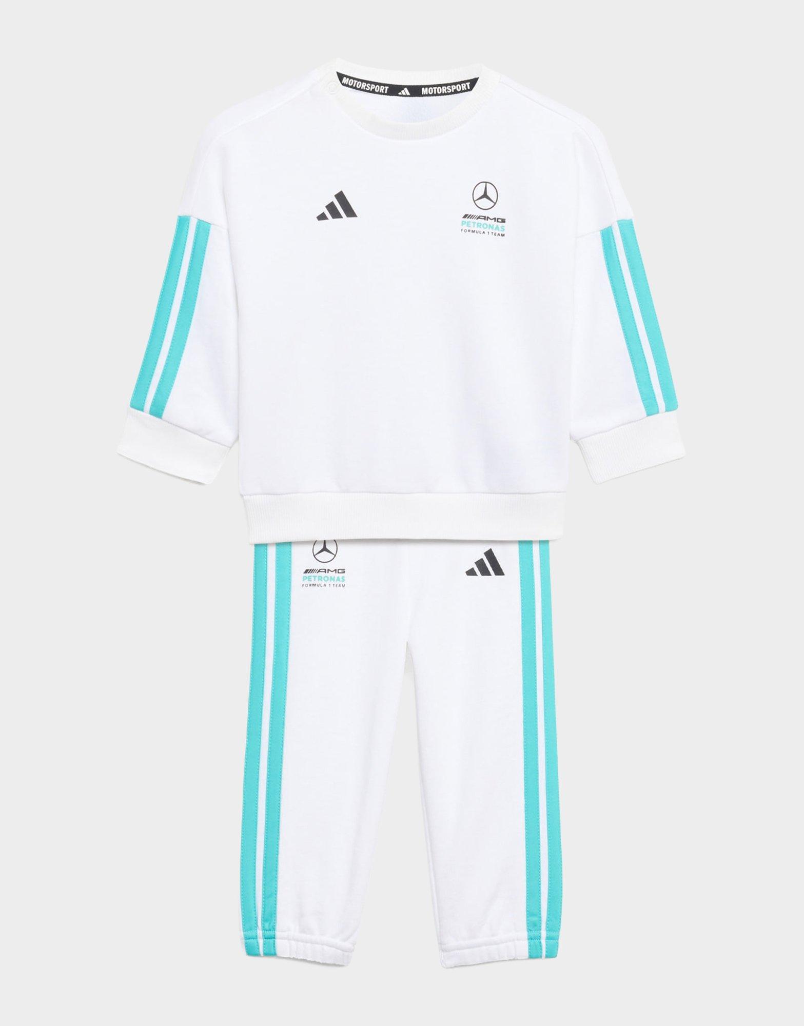 Introduce your little one to the world of motorsport with the Mercedes - AMG Petronas Formula 1 Team DNA Baby Jogger Long Sleeve, designed with the iconic 3-Stripes logo.The regular fit of the joggers allows active little ones to move freely, whilst the fully elasticised waistband and long sleeve top provide a snug fit for playtime.Whether on a family outing or playing, your child will feel part of the action. adidas brings the excitement of Formula 1 to your child's wardrobe, helping them to feel comfortable and stylish.