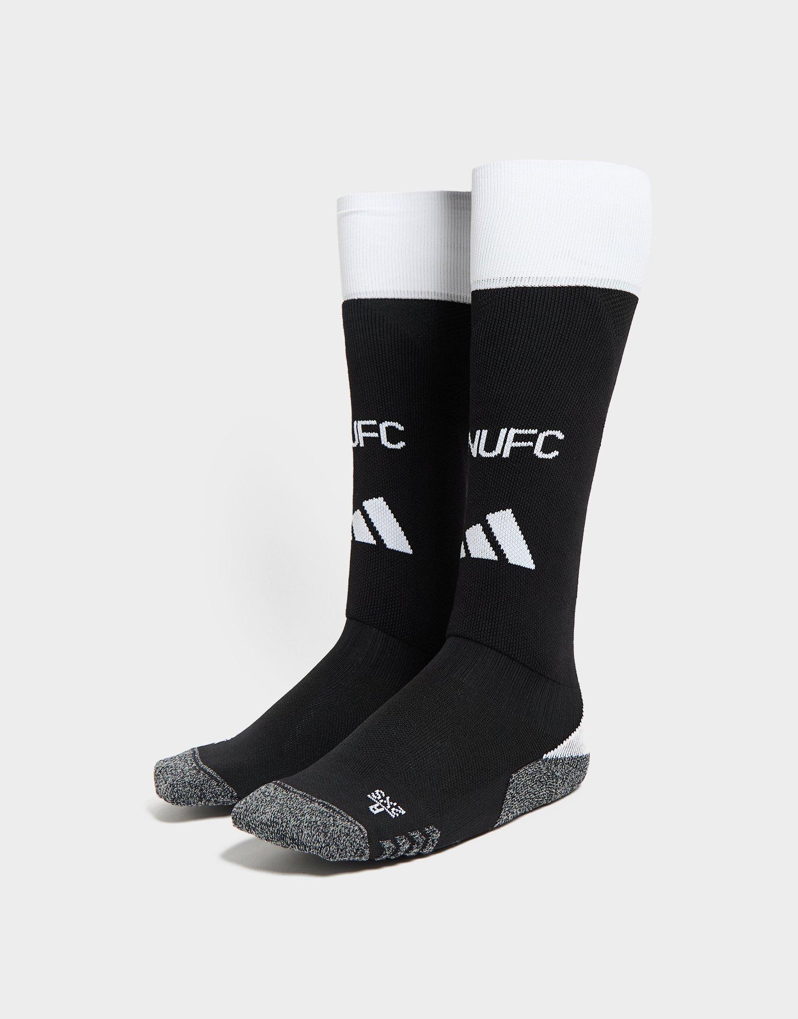 Complete the kit with these juniors' Newcastle United FC 2024/25 Socks by adidas. In a Black colourway, these knee-length socks are cut from a partly recycled blended fabric that's super-soft and stretchy for total comfort. They feature arch support with ankle compression for a snug, secure fit, and are signed off with adidas and NUFC branding. Machine washable. | IW0503