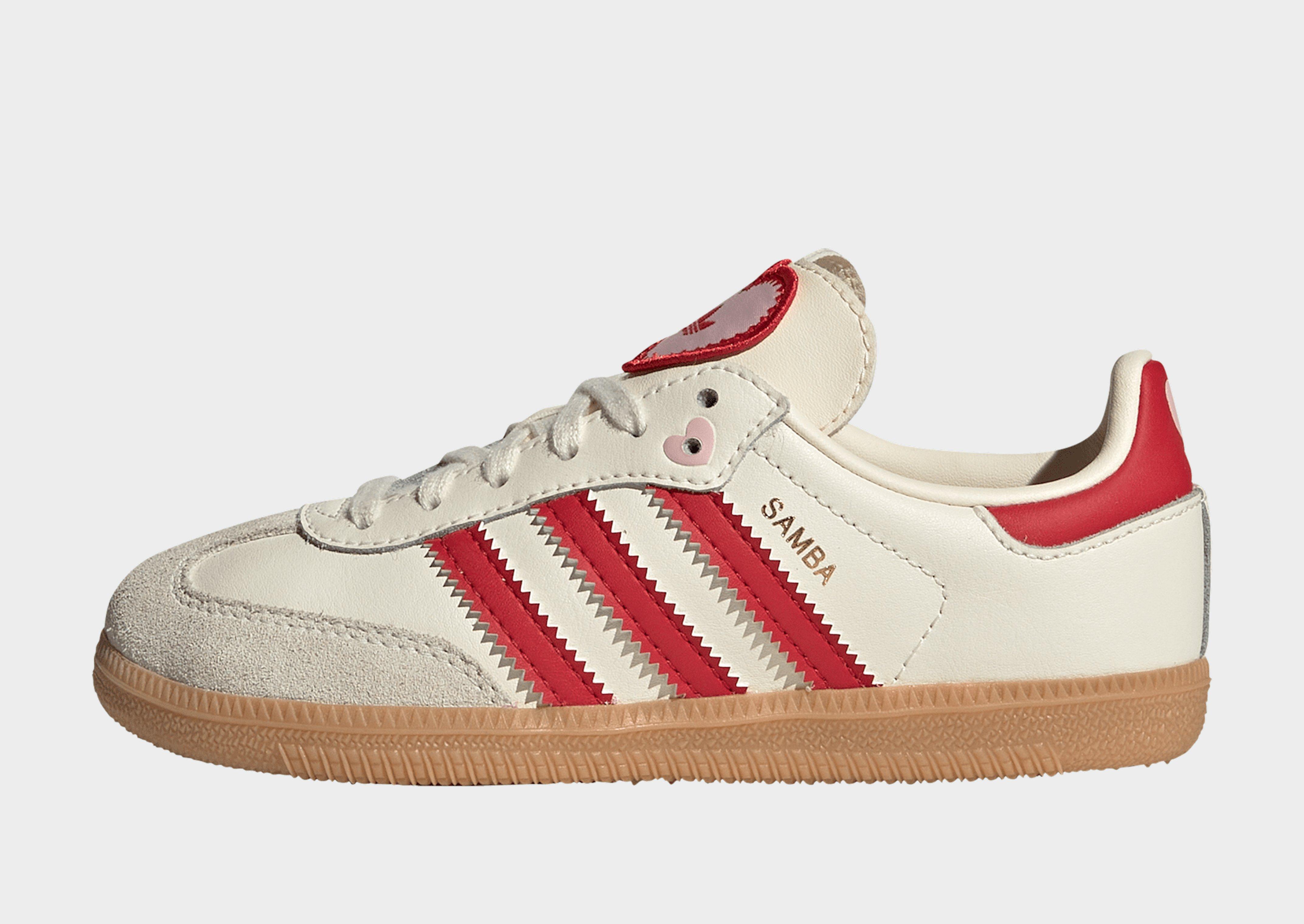 Experience wearable legacy with our Samba OG Shoes, a true icon of adidas Originals. Since the 1950s, Samba has been embraced by generations on football pitches and skate parks for its timeless design and versatility. Crafted with a quality upper and T-toe, adidas offer a classic look that stands the test of time. Designed for kids, our trainers feature a gum tooling making them suitable for school, play, or casual outings. The ortholite sockliner provides comfort, while the eye-stay lace closure and elasticised laces create easy wearability. Classic Originals tongue branding and embossed 3-stripes add a touch of style.Whether they're running around the playground or exploring new adventures, our durable trainers are a piece of history that your little one can make their own.