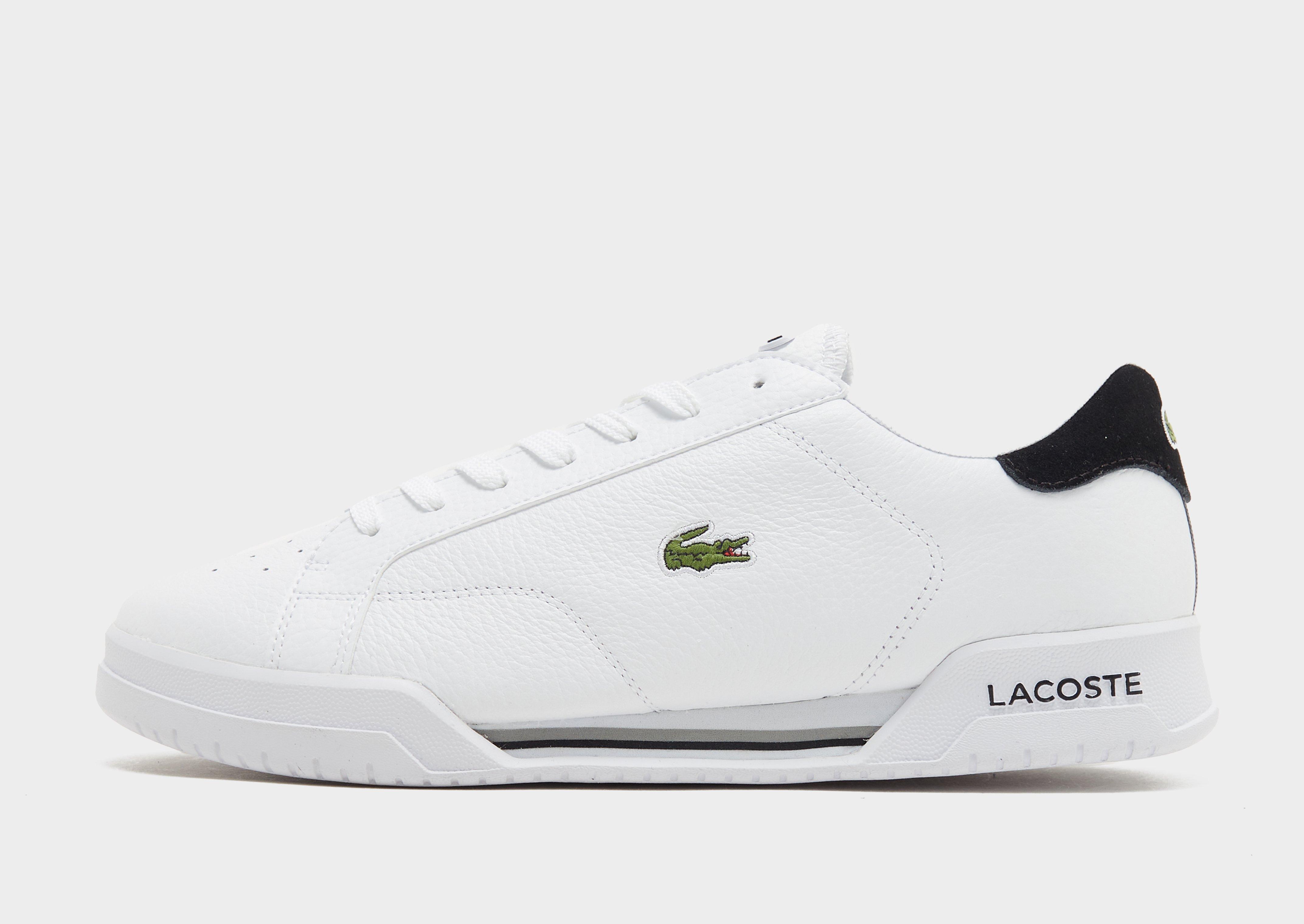 Step into heritage with these men's Twin Serve sneakers from Lacoste. Nodding back to the brand's roots, these JD-exclusives land in a crisp White colourway with Black and Silver accents, these trainers have a durable leather upper, with a striped tab down the heel for a sporty touch. They're sat on a cushioned midsole and solid rubber outsole for essential grip. Finished up with Lacoste wordmark branding on the sole and the Crocodile to the sidewalls and heel.
