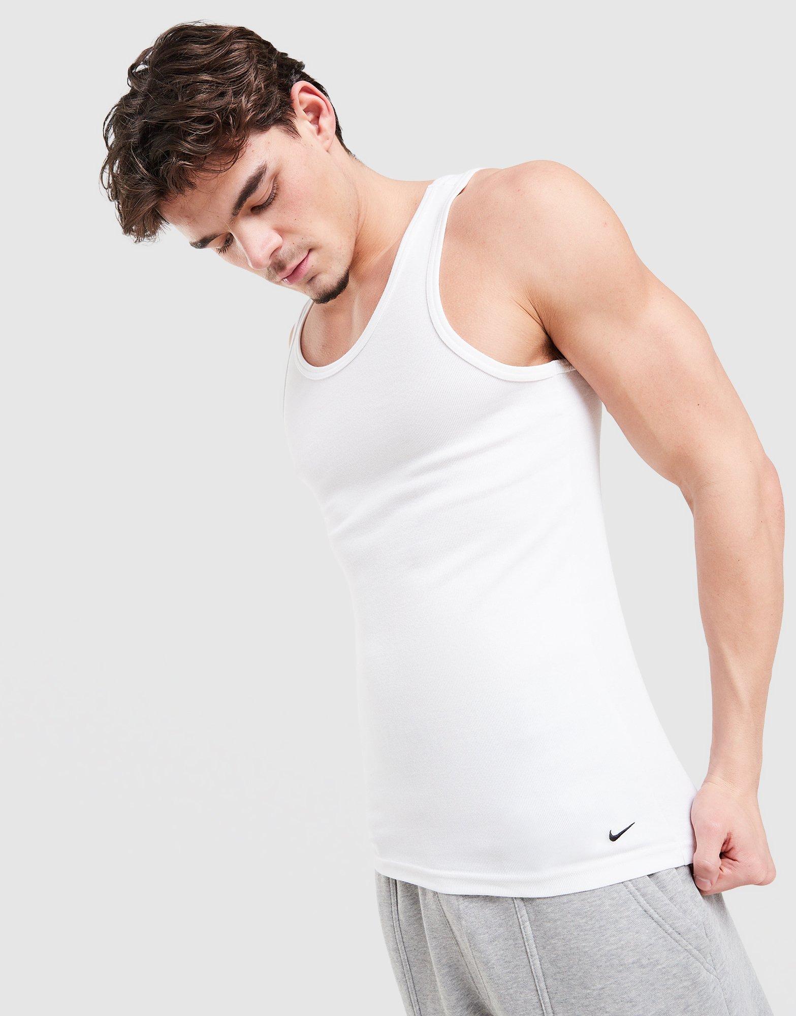 Nike's got the staples covered with this men's 2-Pack Swoosh Tank Top. In white, they're cut from soft cotton fabric. They've got a round neckline and a sleeveless design, with Swoosh branding to finish things up. Machine washable. | Our model is 6'2" with a 37" chest and wears a size M.