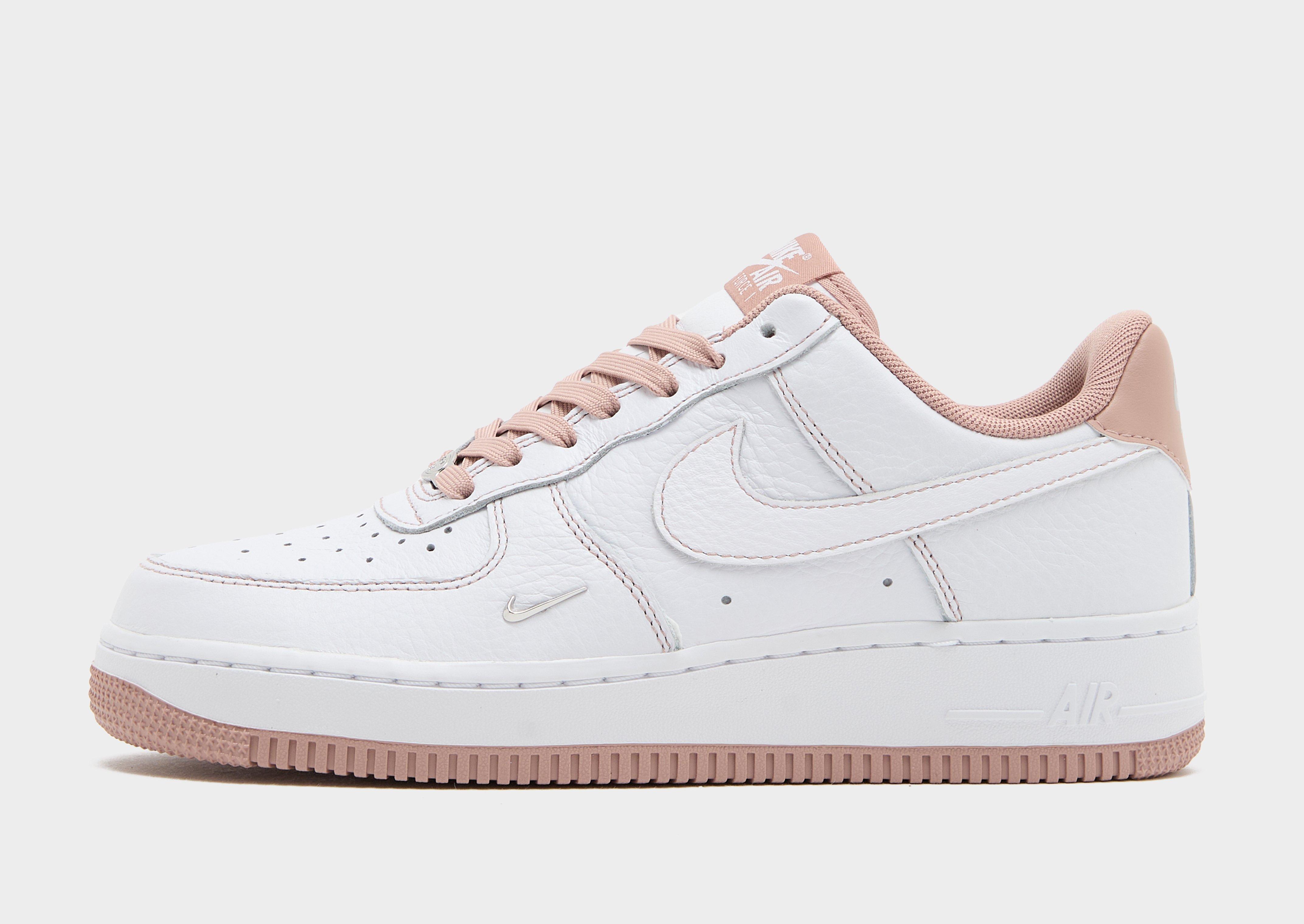 Go classic on your feet with these women's Air Force 1 Mini Jewel sneakers from Nike. In a White, Pink Metallic and Metallic Silver colourway, these sneaks are cut from smooth and durable leather for lasting wear. They feature a lace fastening to lock you in, with a padded collar for support and breathable perforations for ventilation. Underfoot, they sit on a soft foam midsole with Nike Air cushioning for a smooth ride, with a grippy rubber outsole for firm traction. Finished up with signature Swoosh branding.
